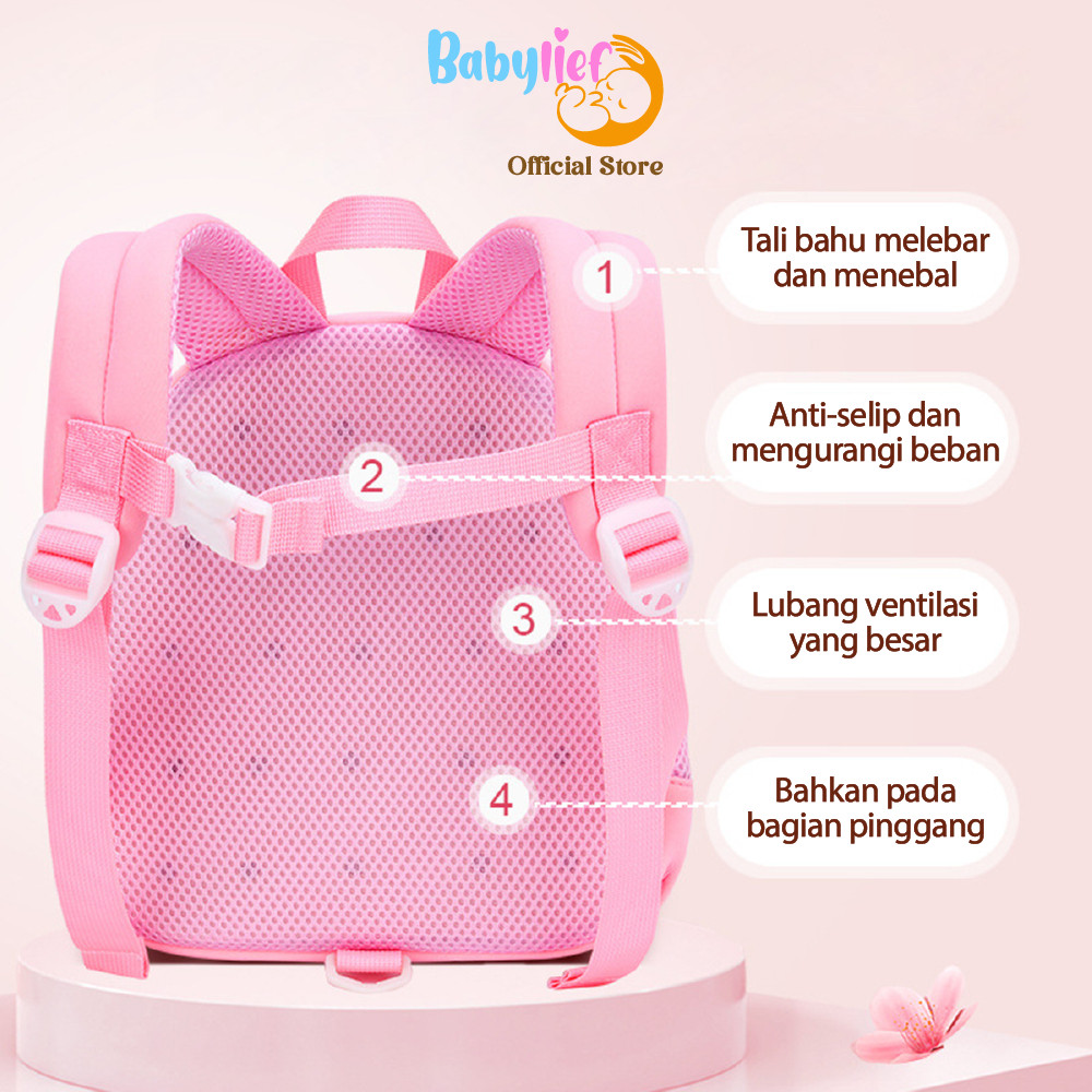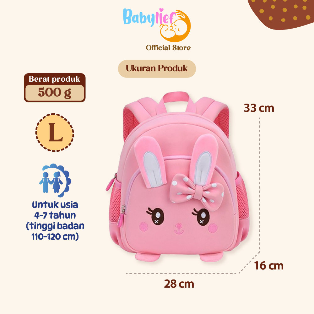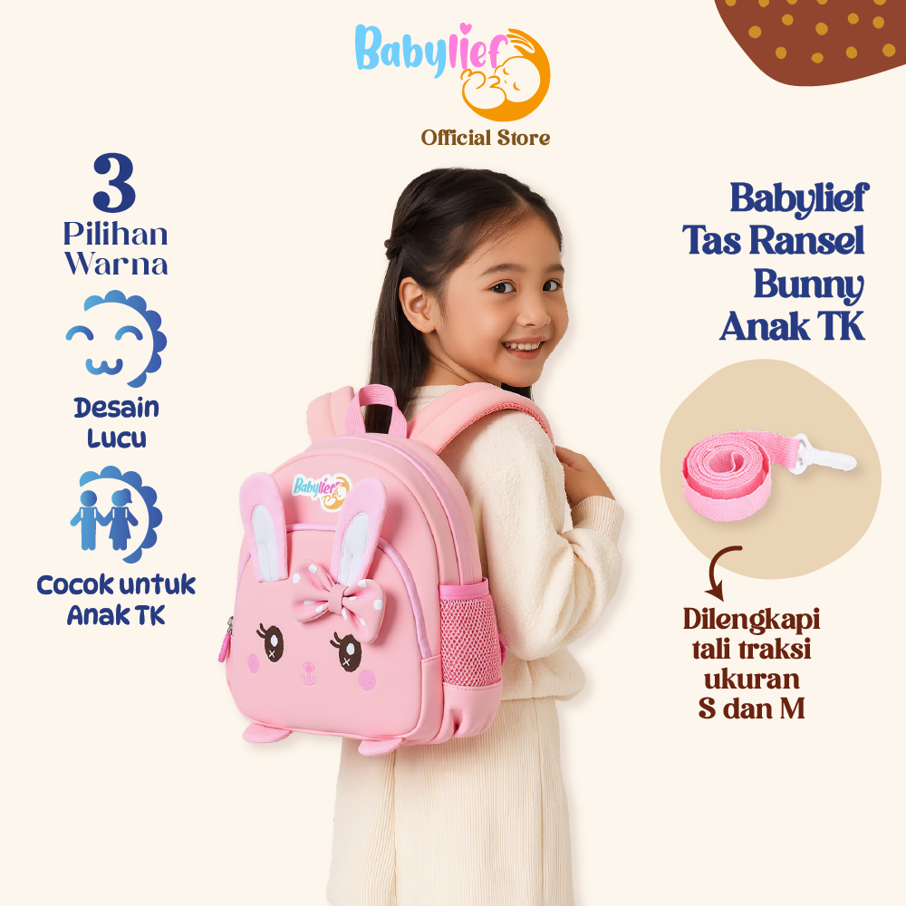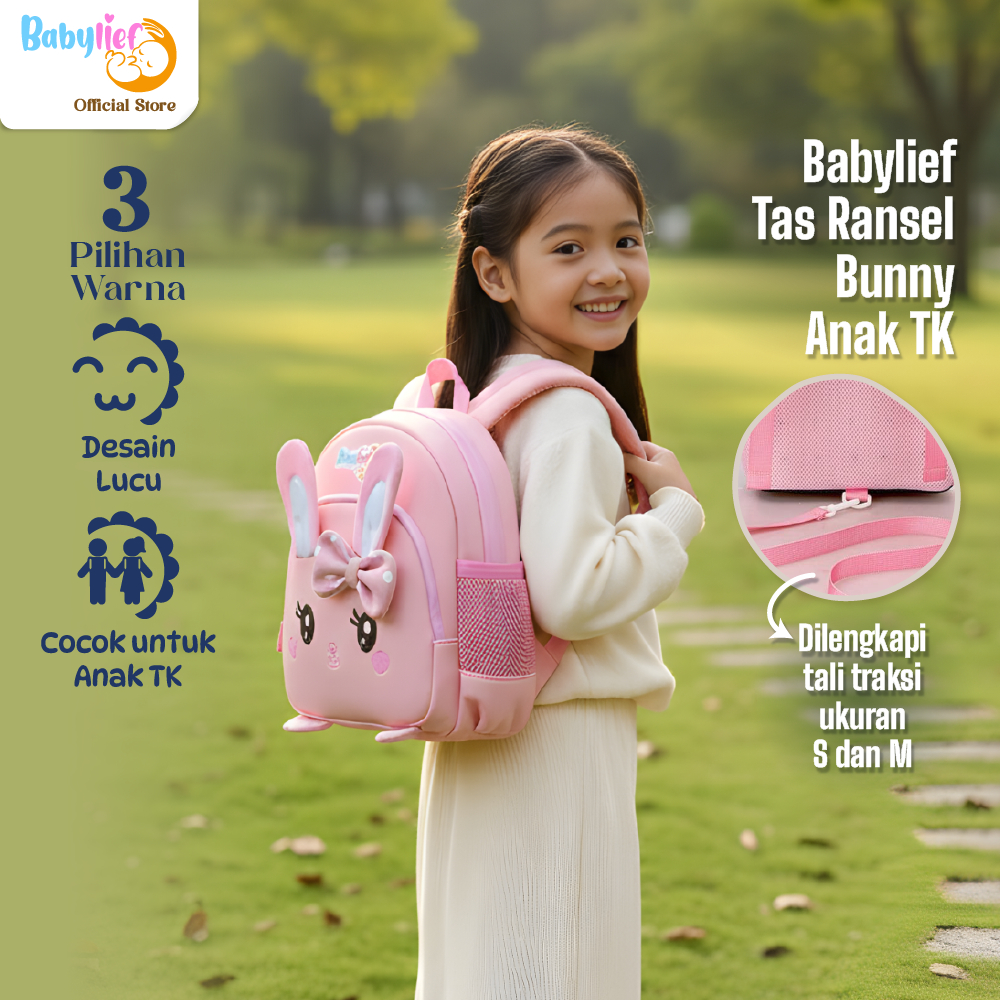 Babylief Tas Ransel Anak TK Motif Bunny Kelinci – Fashion Lucu dengan Tali Pengaman & Bahan Ringan BL058