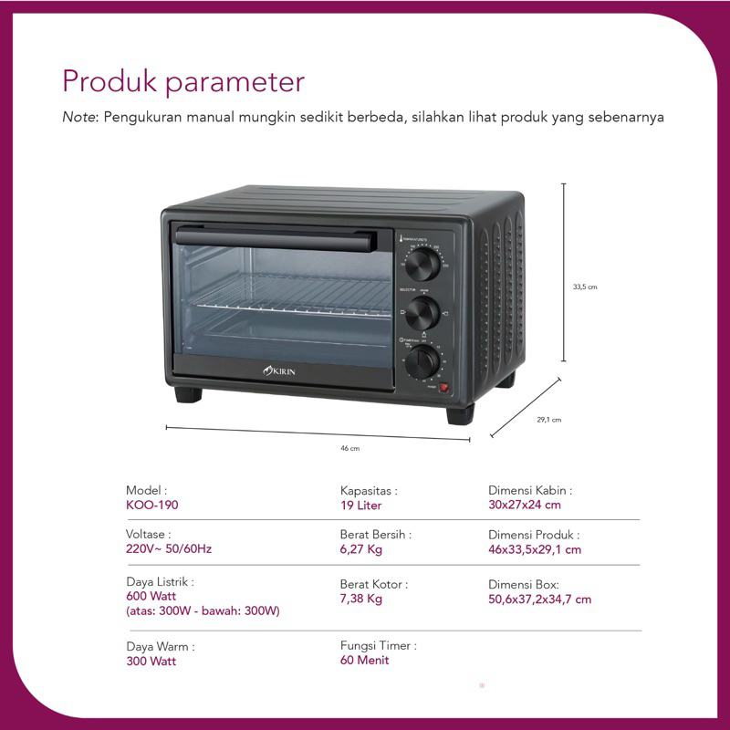 Kirin Oven Toaster Listrik 19l Kbo-190 New Oven Listrik Best Seller Low Watt Berkualitas Mito Cosmos Philips Samono