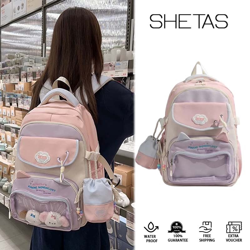 Shetas-Kucing lucu backpack tas ransel tas sekolah korea import fashion tas bahu lucu Wanita Kuliah laptop berkapasitas besar