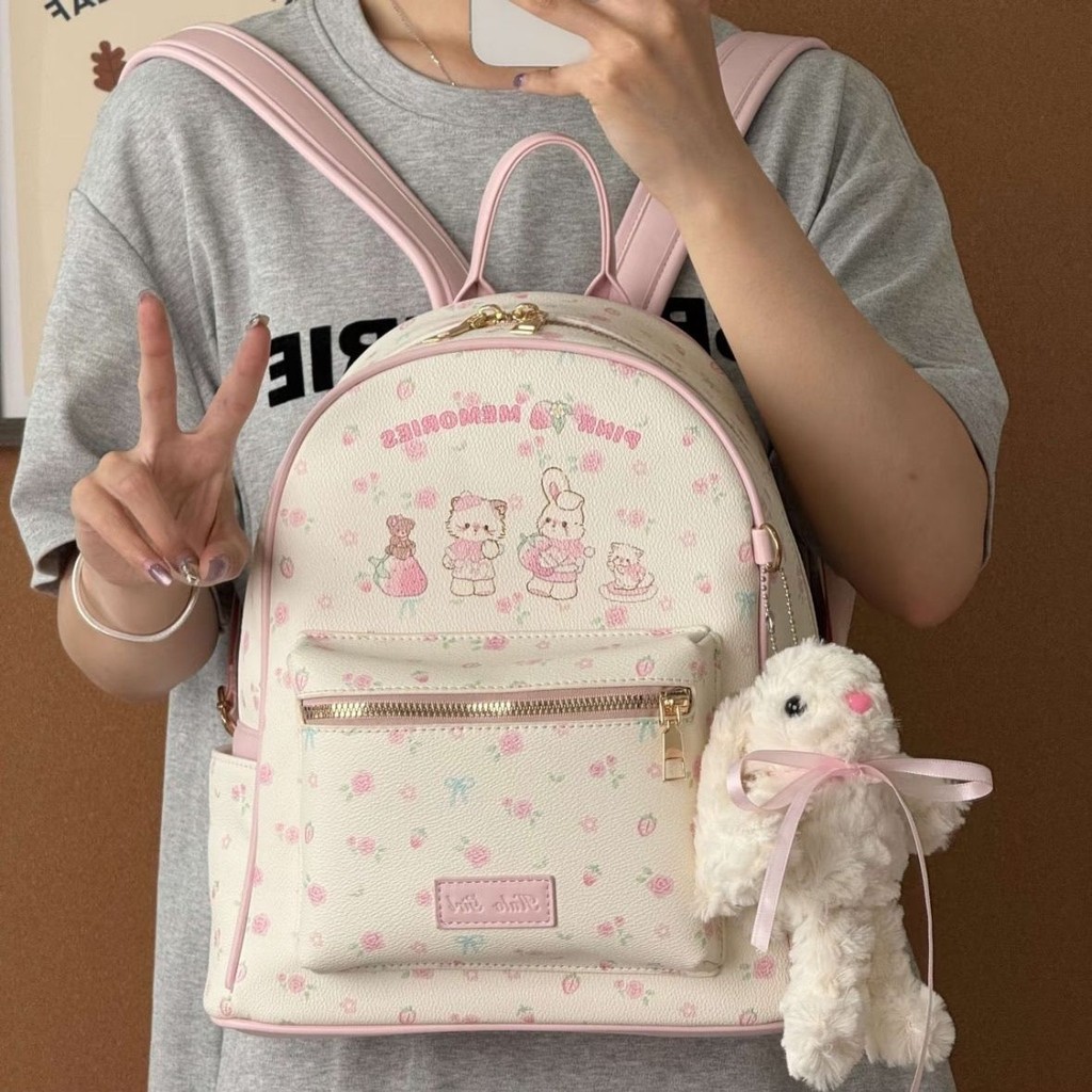Y2.Morgan Ransel Anak Kucing Dan Kelinci Motif Bunga Baru Warna Pink Lucu Untuk Bepergian Tas Pelajar Berkapasitas Besar Import