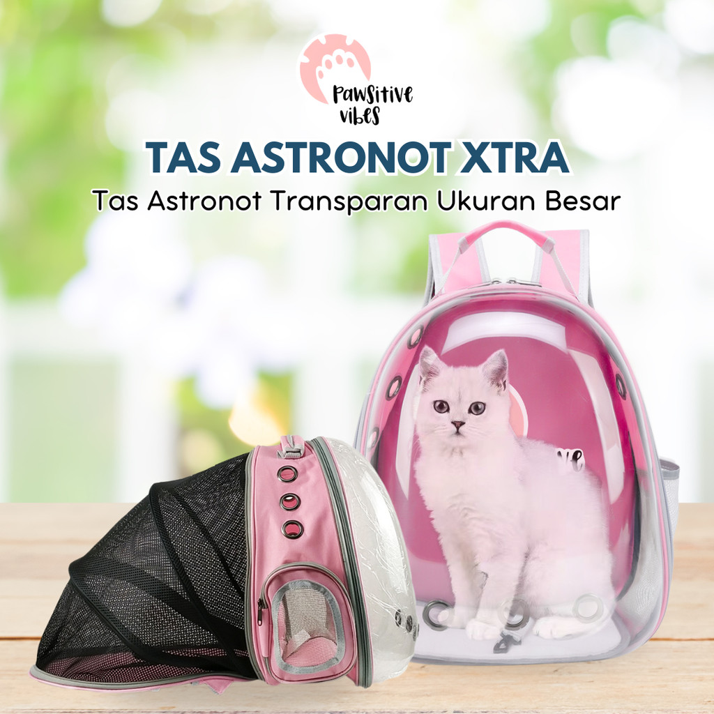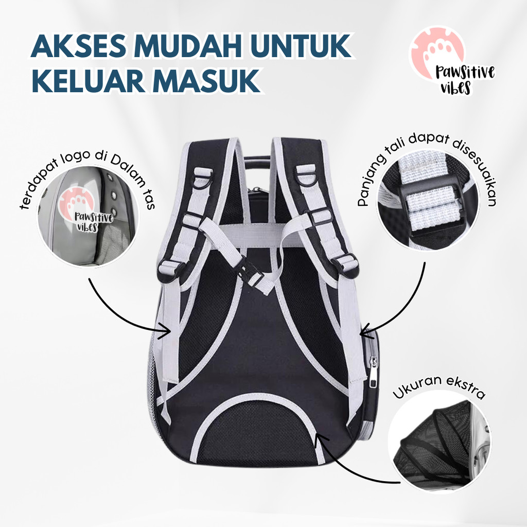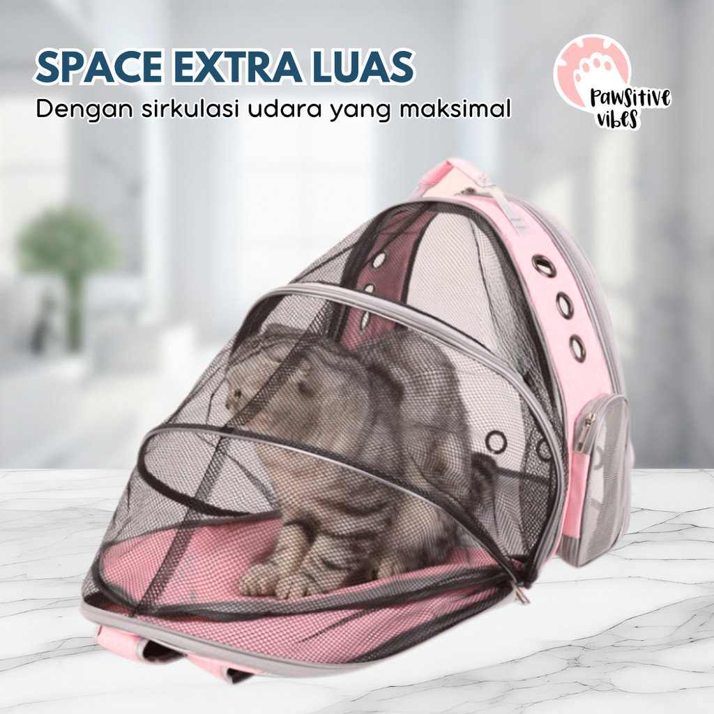 Pawsitive Vibes Tas Astronot Kucing Xtra - Tas Ransel Murah - Pet Travel Bag Nyaman dan Anti Air - Tas Ransel Jaring Transparan - Anjing Kucing Kelinci Pet Cargo