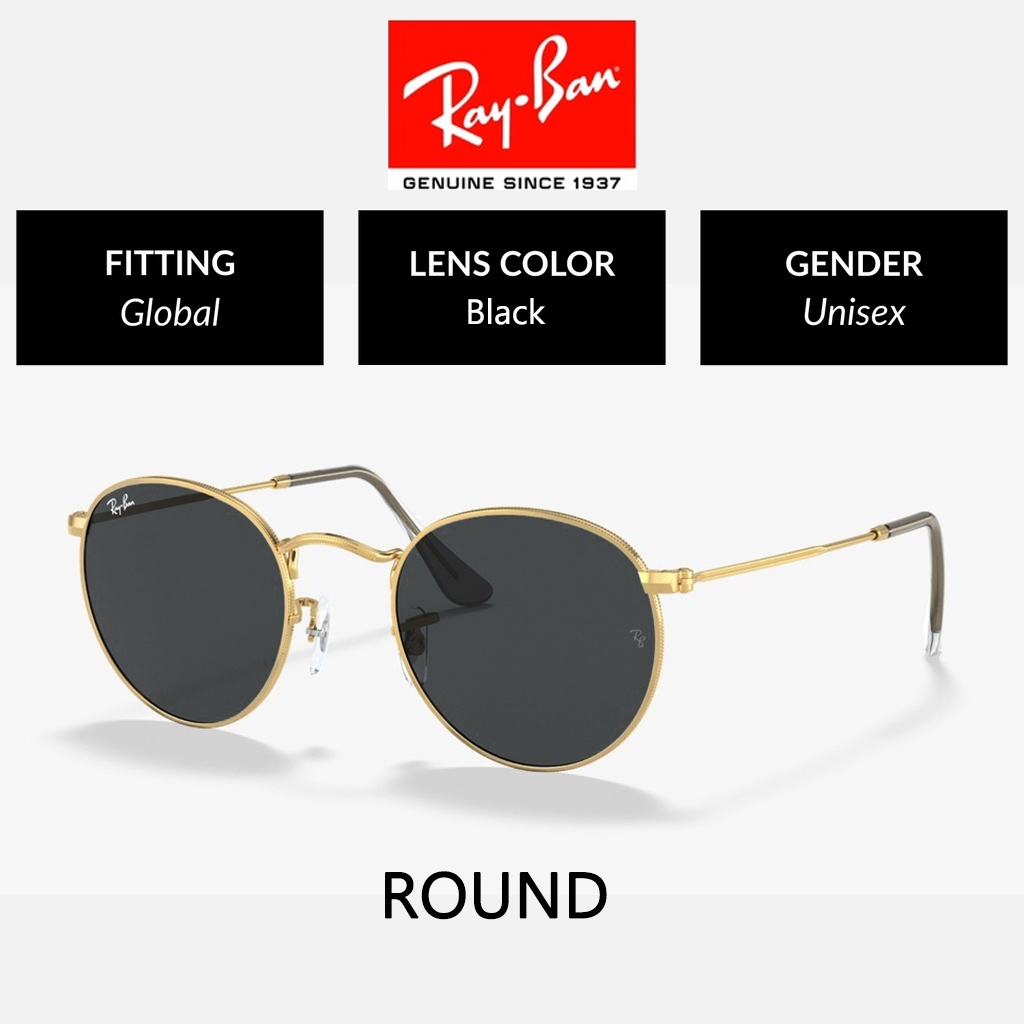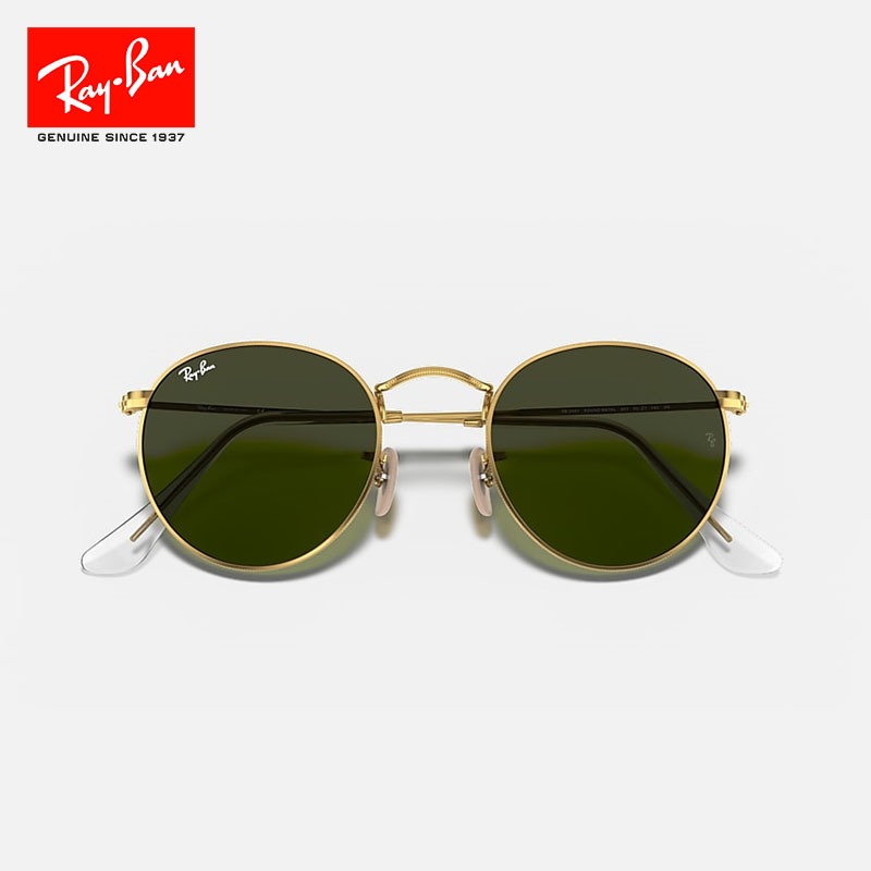 100 PERSEN Original Kacamata Hitam Ray-Ban Round Metal RB3447 Gold Green Unisex Sunglasses
