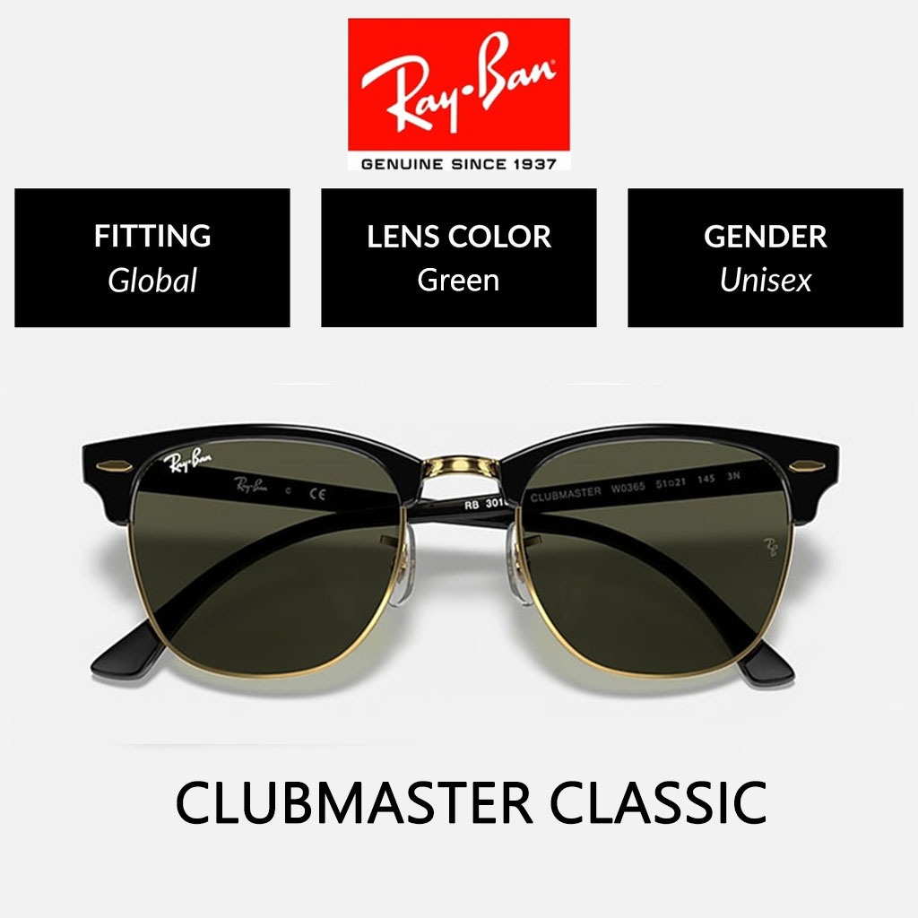 100 PERSEN Original kacamata Ray-Ban Sunglasses CLUBMASTER CLASSIC RB3016 Global Fitting men/women/ori