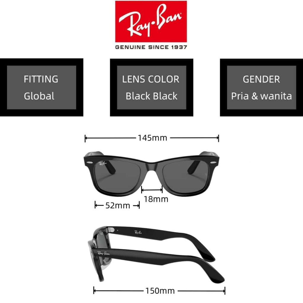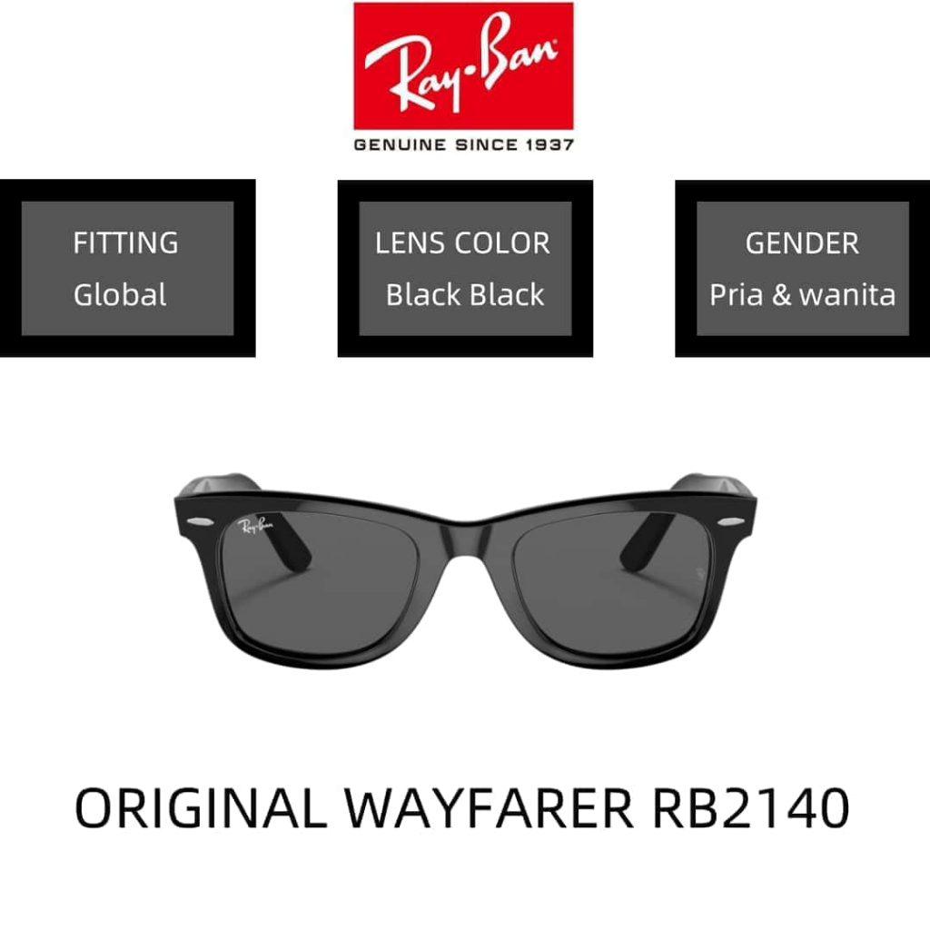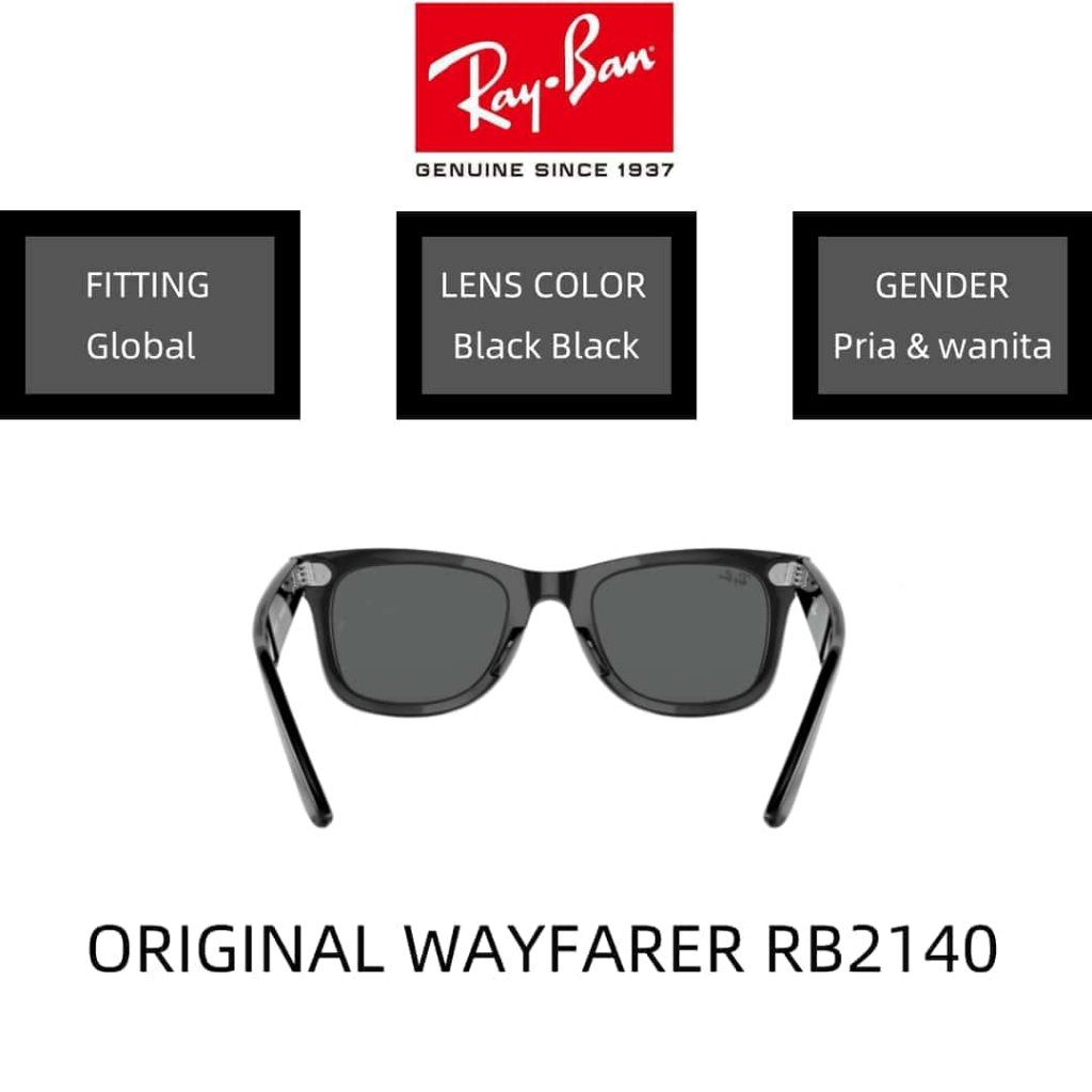 100 PERSEN Ori -- acamata Hitam RAY-BAN ORIGINAL WAYFARER RB2140 Sunglasses 52mm Black Black pria wanita