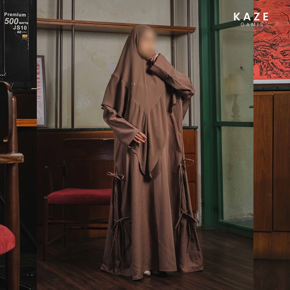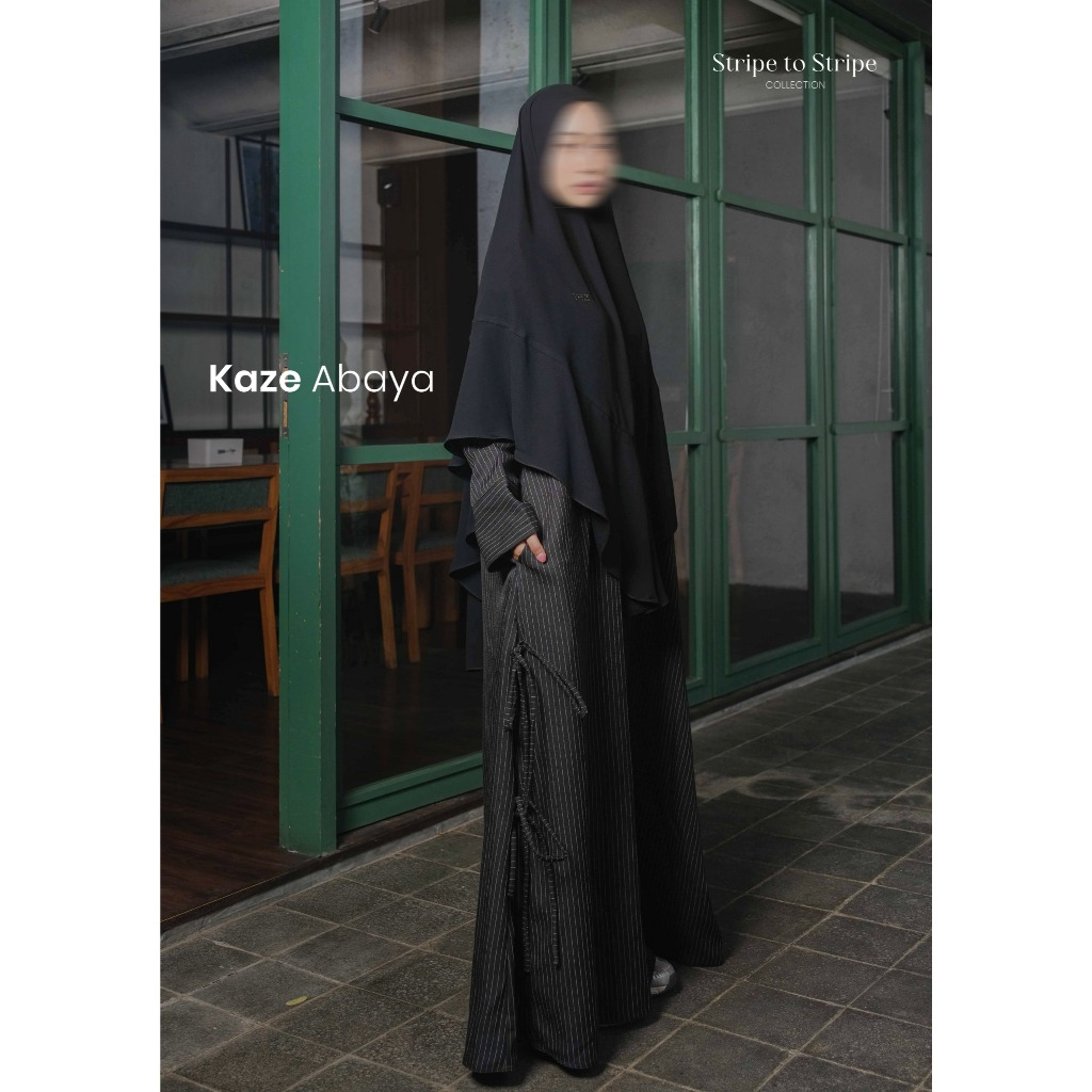 TRZ Kaze Abaya – Gamis Premium Busui Friendly Stripe Poly dengan Tali Pinggang Saku Long Dress Umroh