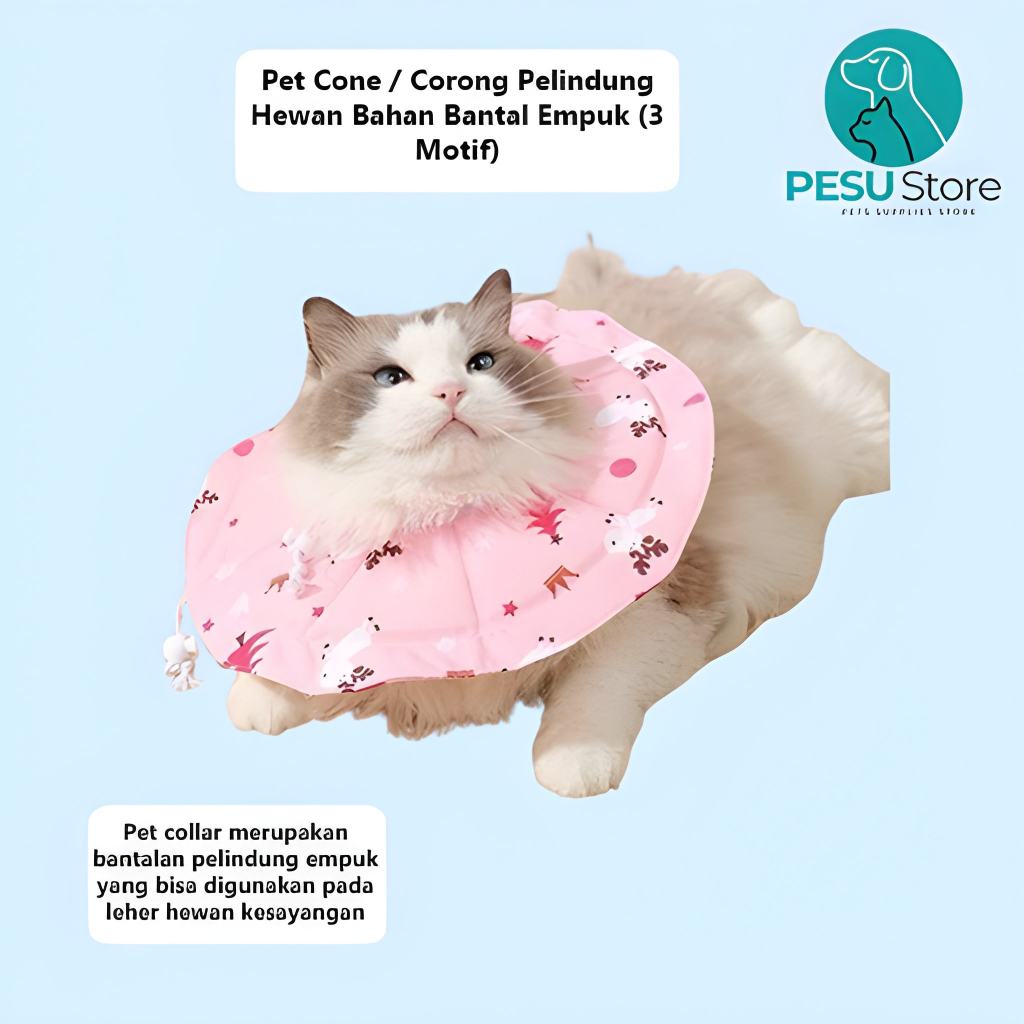 Corong Pelindung Lucu - Bahan Bantal Empuk | Pet Cone Anjing Kucing 3 Motif