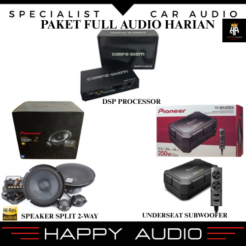 Paket Full Audio Harian (2) Speaker 2-way PIONEER + Subwoofer Kolong Jok PIONEER + DSP Processor Carpediem Audio Mobil Universal