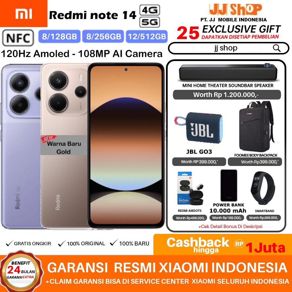 XIAOMI REDMI NOTE 14 5G & 4G 12/512 8/256 8/128 GB RAM 12GB 8GB ROM 512GB 256GB 128GB GARANSI RESMI