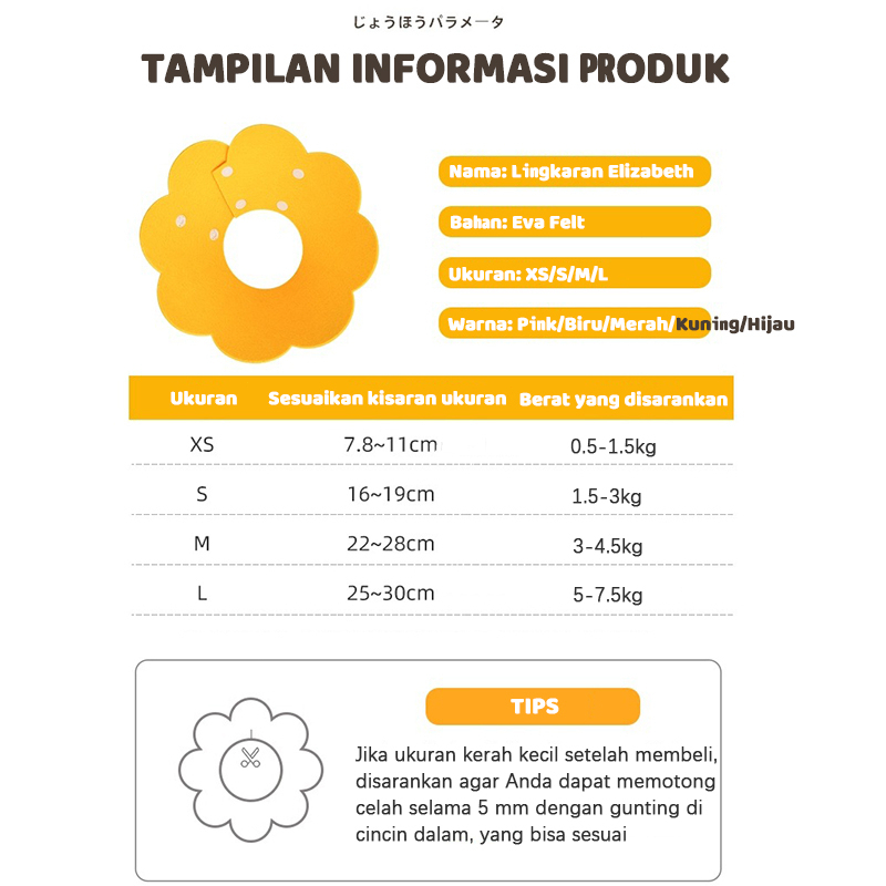 [HACIKO PETSHOP] Pelindung Leher Anjing Kucing Neck Elizabeth Cone Collar Corong Model Bunga Matahari Lucu/Collar Pelindung Leher Kucing Anjing Kelinci Collar Spon Corong Penutup