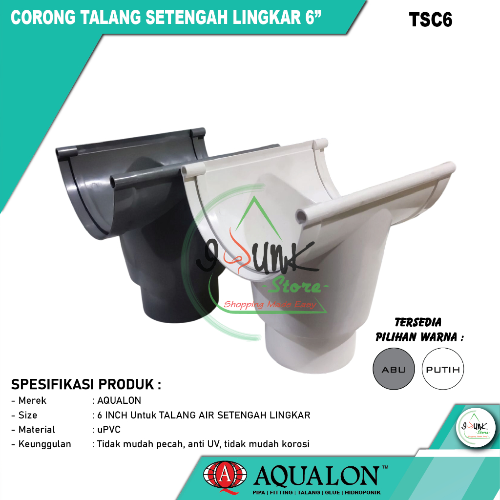 CORONG TALANG SETENGAH LINGKAR 6 INCH uPVC / CORONG TALANG BULAT U6 uPVC - AQUALON