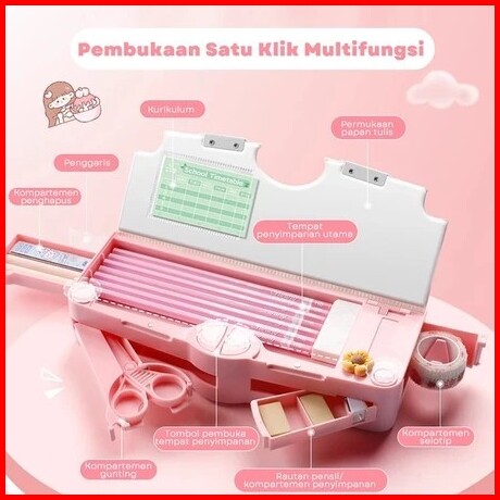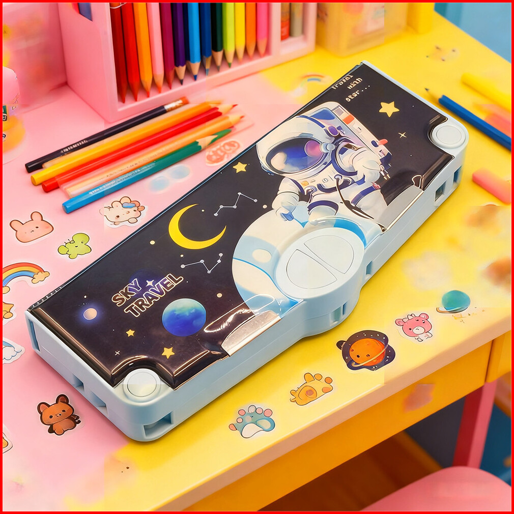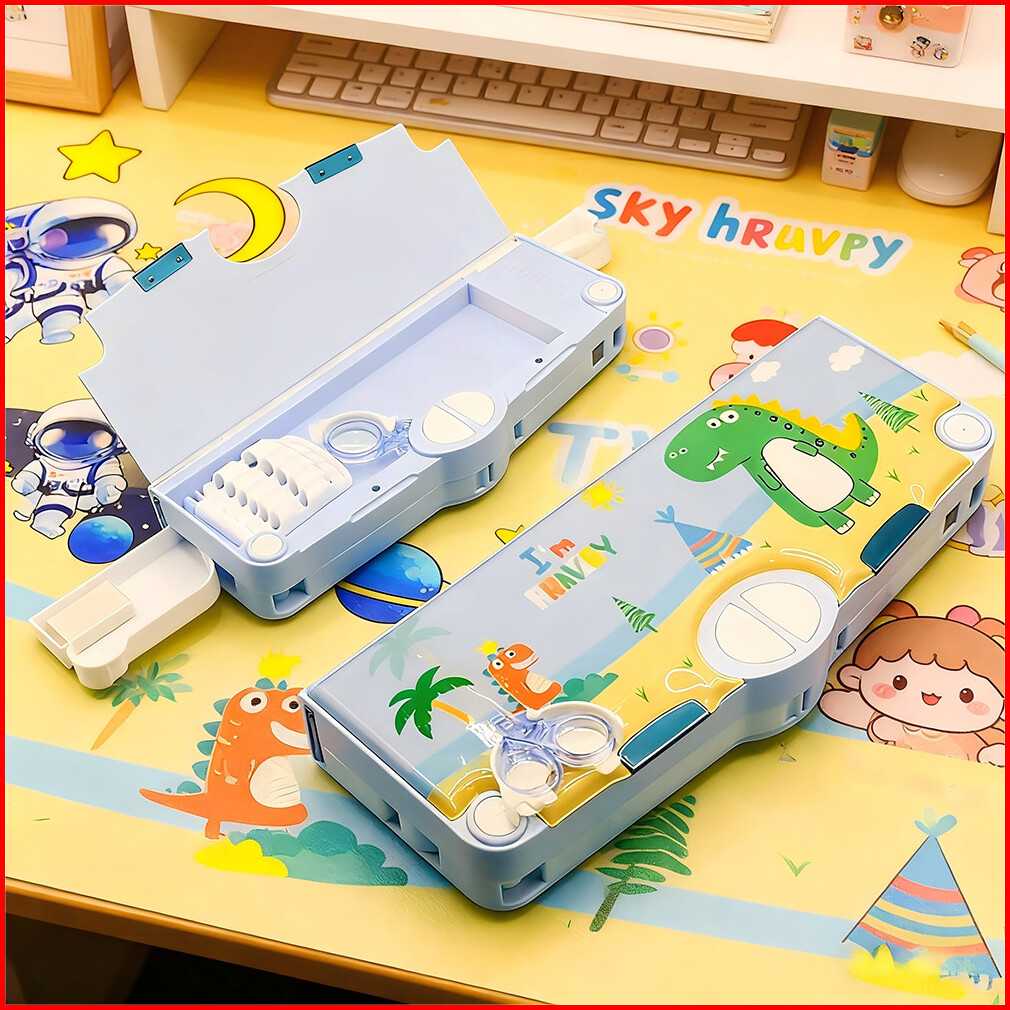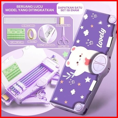 Kotak Pensil 2 Sisisi Kapasitas Besar Multifungsi Dilengkapi Rautan Pensil Gunting Penggaris