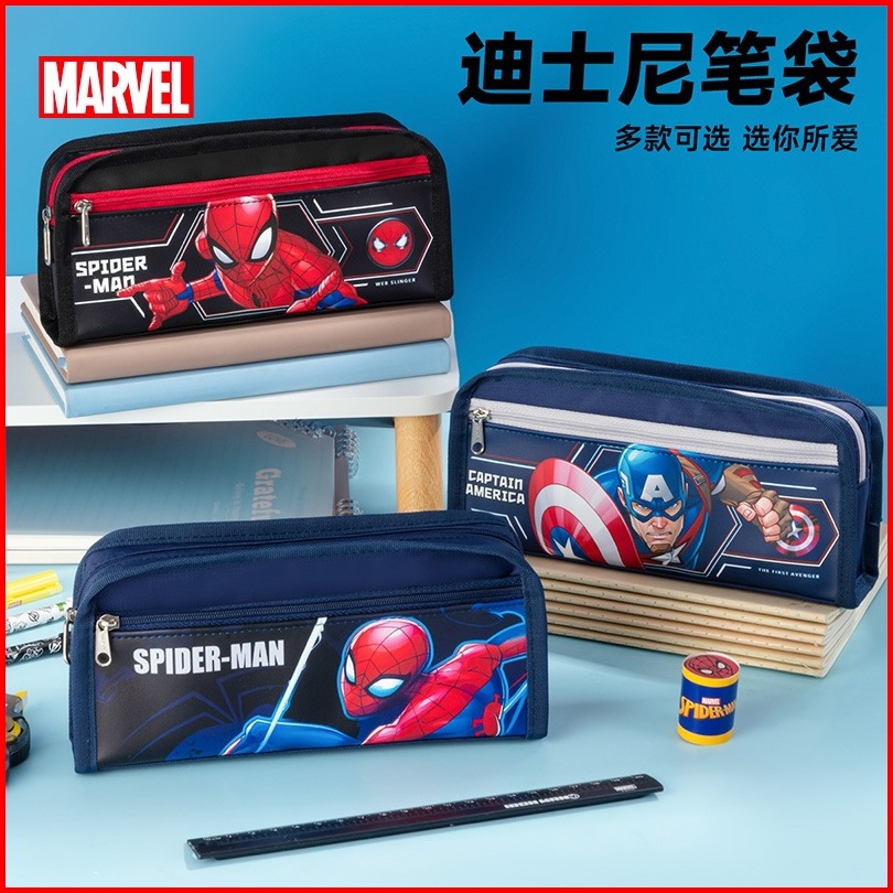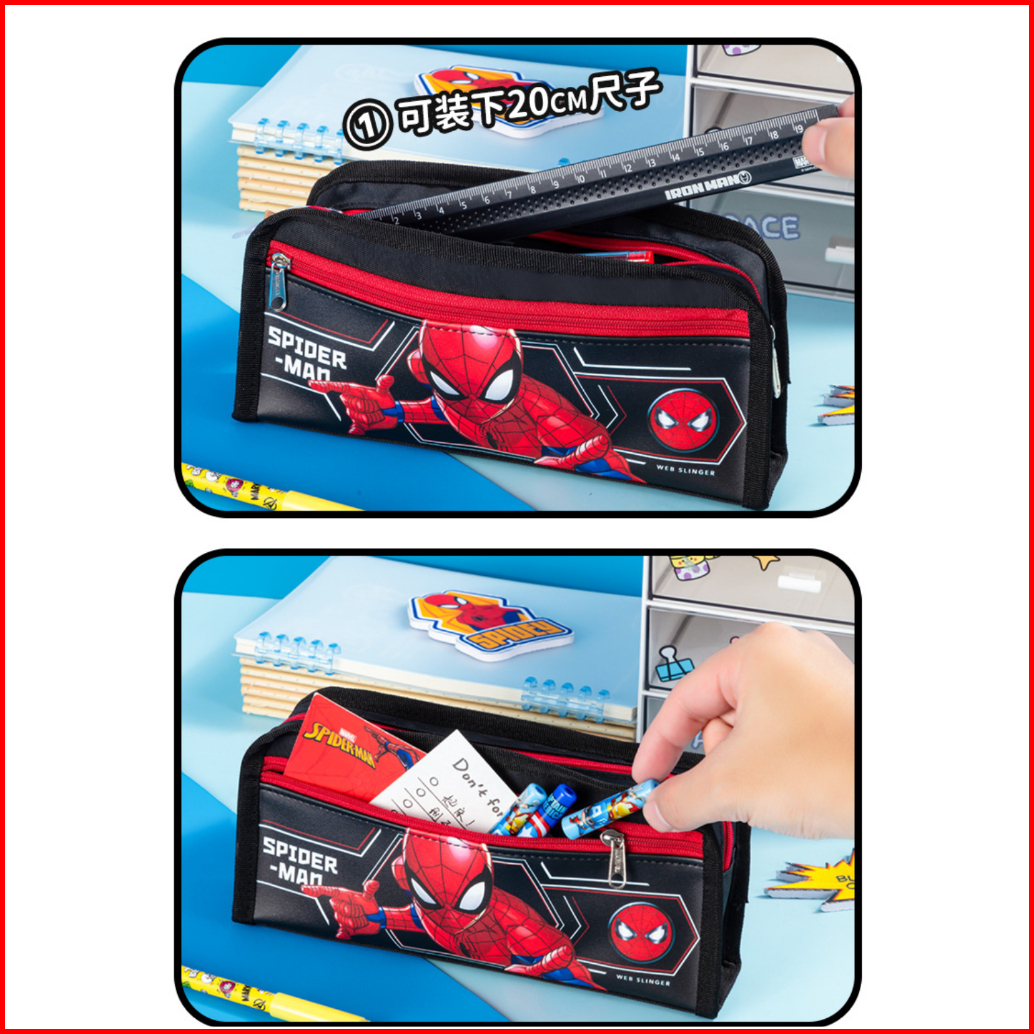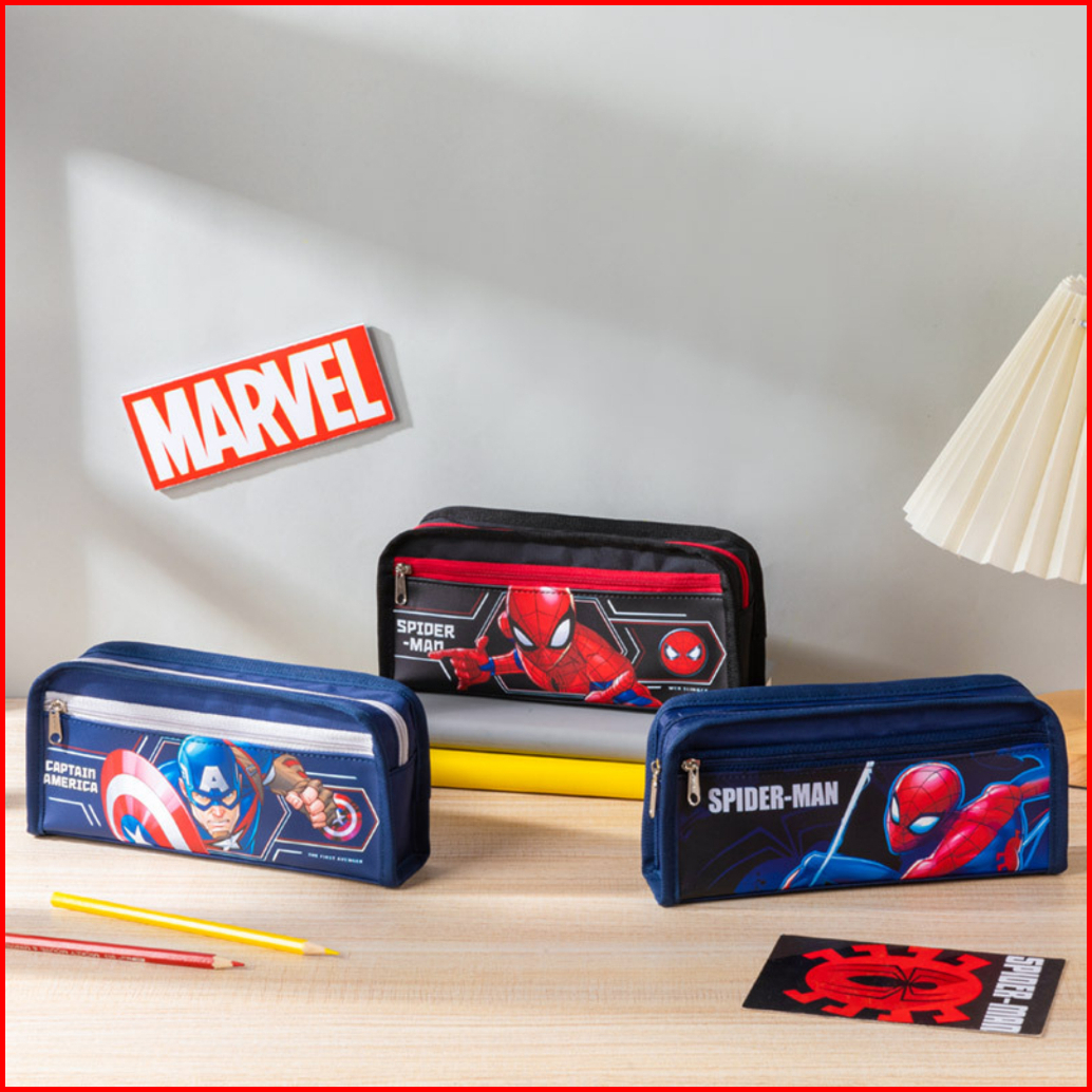 Tempat Pensil Anak Bahan Kain Double Layer Karakter Superhero Avengers Spiderman Pencil Case Marvel