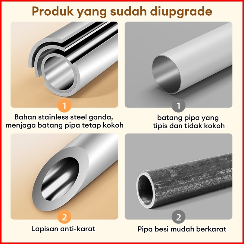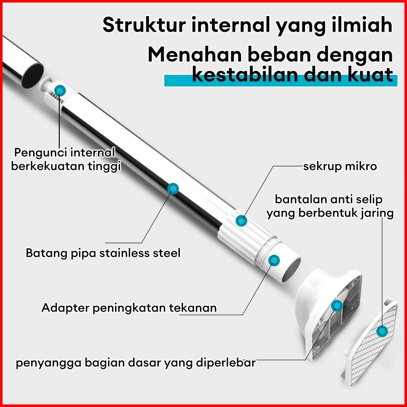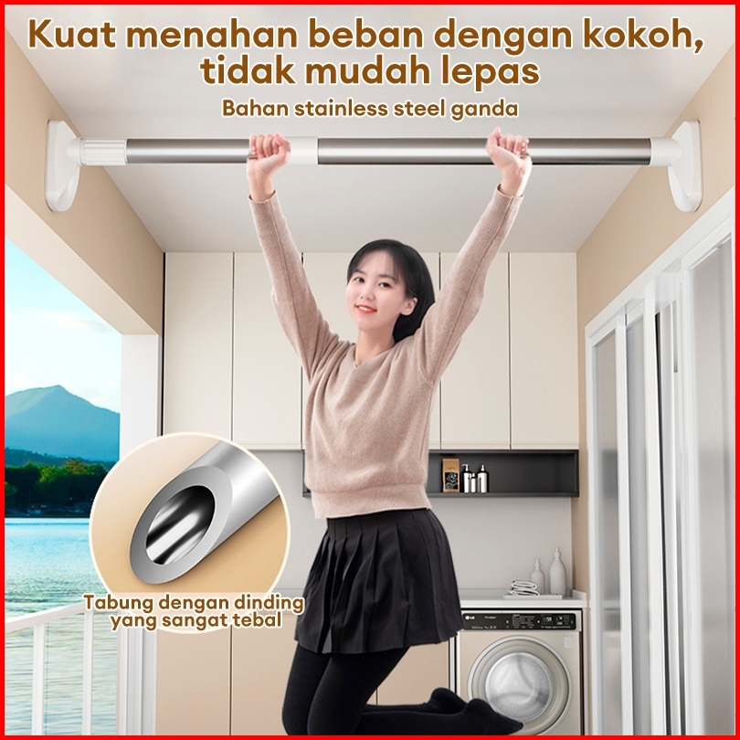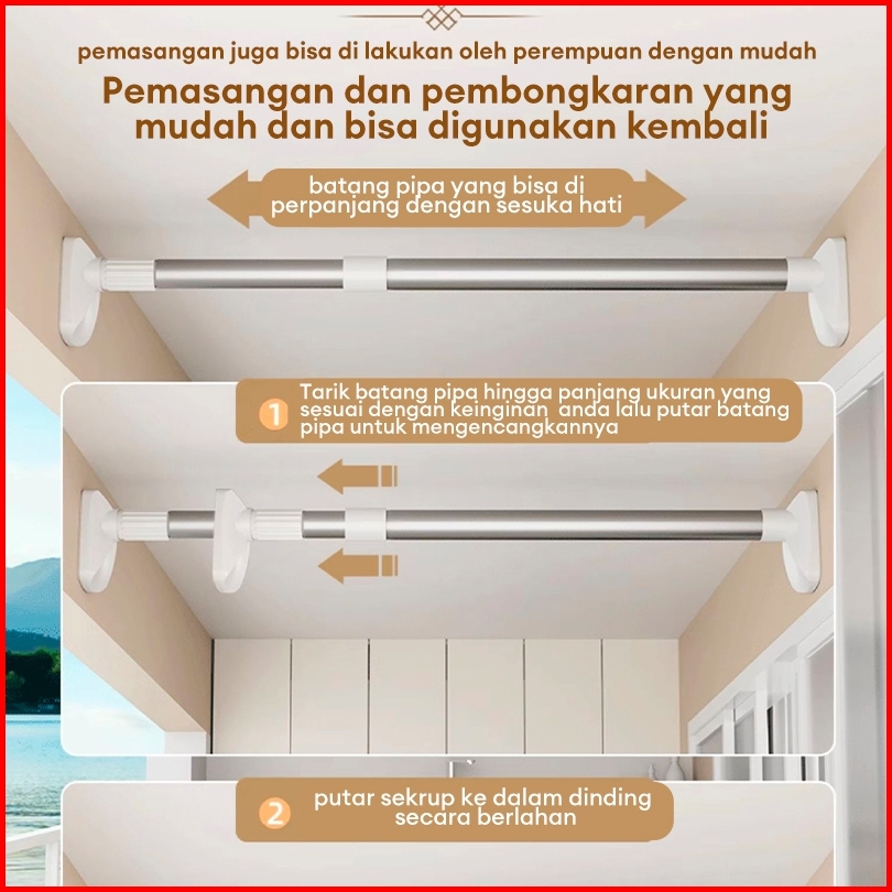Tiang Jemuran Baju Gantungan Tiang Hordeng Fleksibel Tiang Tiang Pipa Kamar Mandi Tiang Gorden Batang Dinding Tanpa Bor