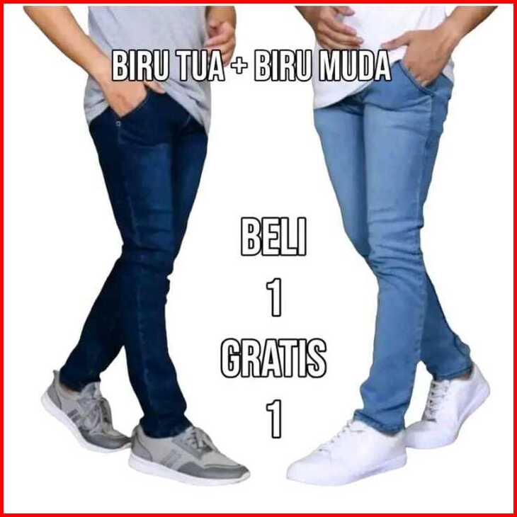 Promo Paket Hemat Beli 1 Gratis 1 Dapat 2 Pcs Celana Jeans Pria Panjang Pensil Slimfit Skiny Melar Denim Premium Metro J