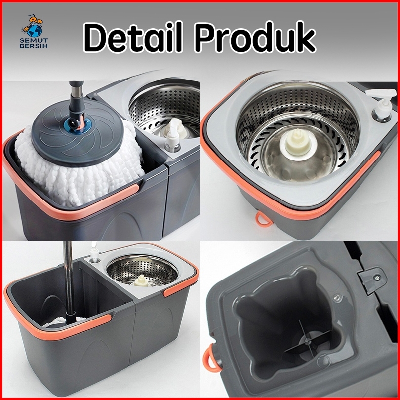 Semut Bersih Pel Lantai 2 In 1 Kain Mikrofiber Pembersih Lantai Ember Terpisah Lepas Pasang Pel Abu Orange Rotasi 360 Da