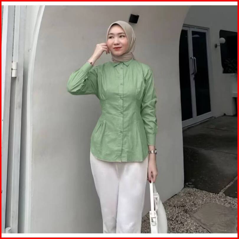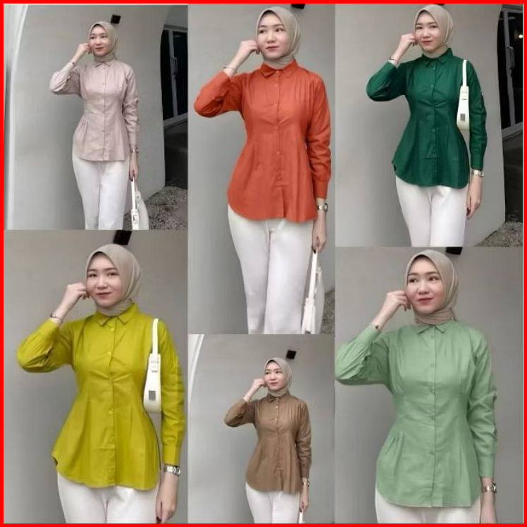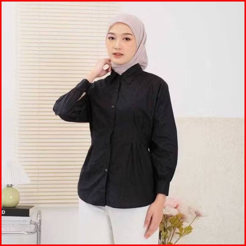 Luna Top Long Sleeve Blouse Wanita Kekinian Ld 105cm Dan 115cm Matt Cotto Atasan Kemeja Abu Wanita Basic Daily Office Sh