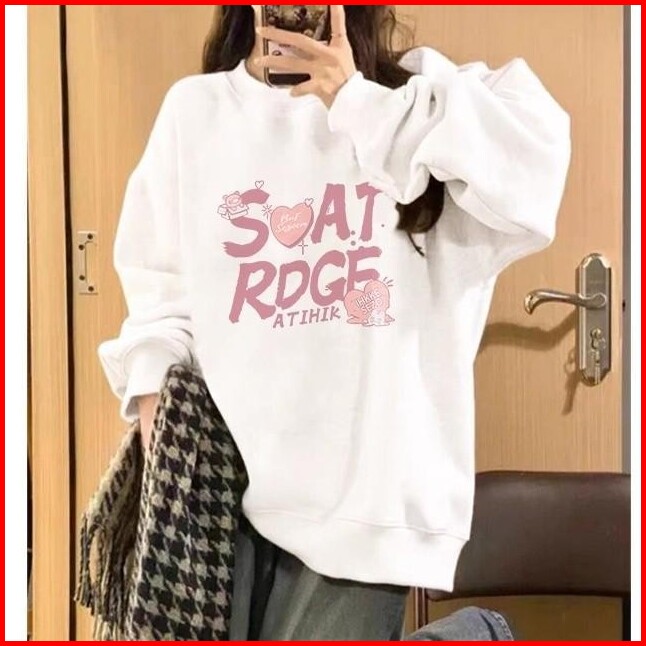 Jkt Fashion Id - Sweater Oversize Lengan Panjang Motif Letters Pink Bahan Cotton