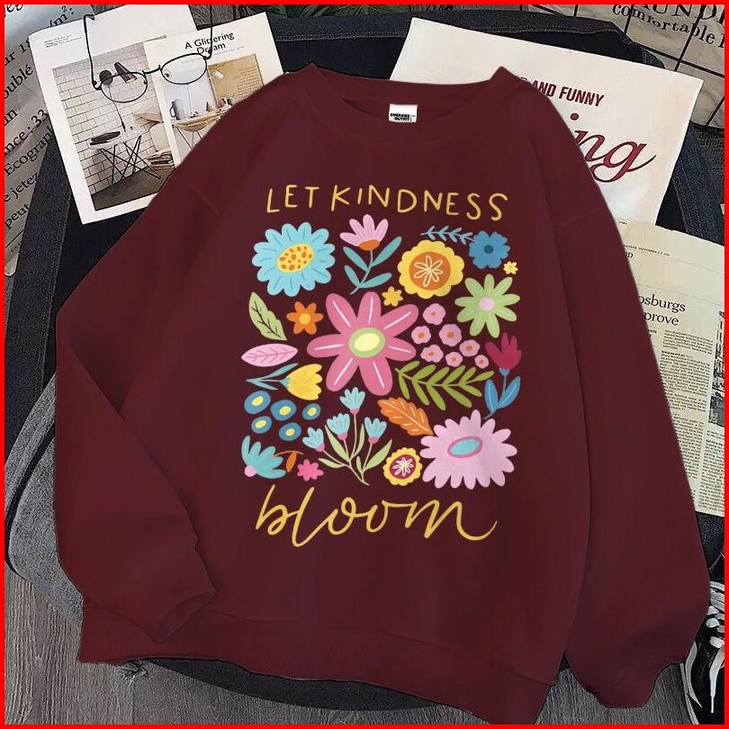 Sweater Oversize Korean Style Motif Flower Bloom Street Style Bahan Cotton Nyaman
