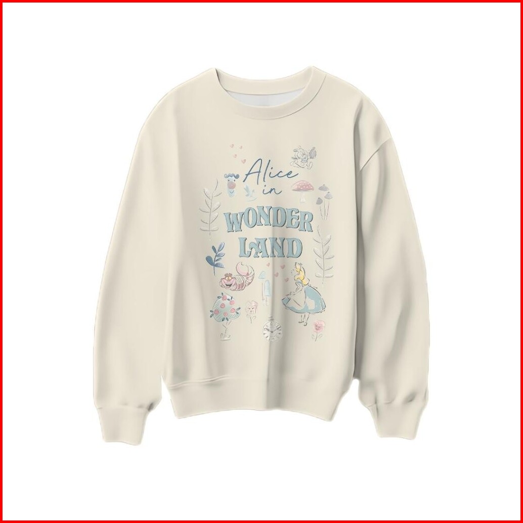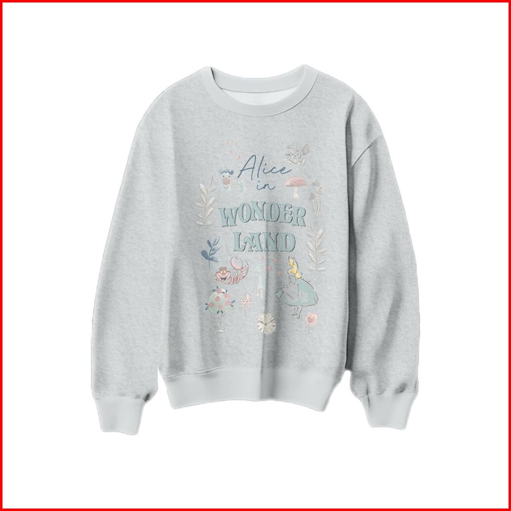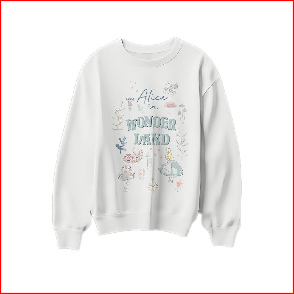Sweater Wanita Oversize Lengan Panjang Korean Street Style Katun Susu Motif Wonder Land