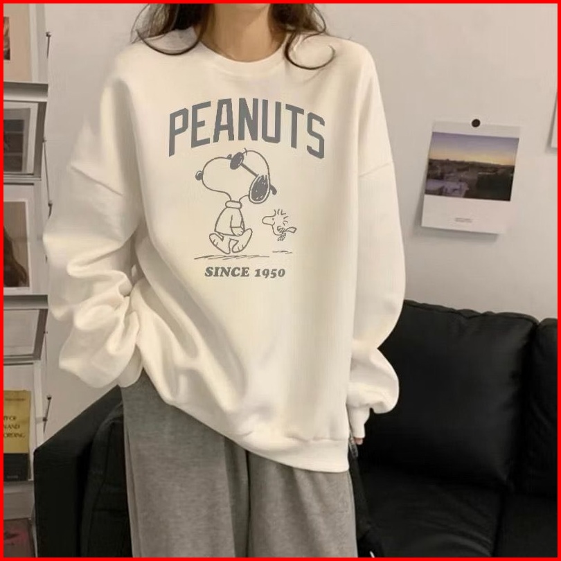 Peanuts Sweater Oblong Crewneck Oversize Wanita