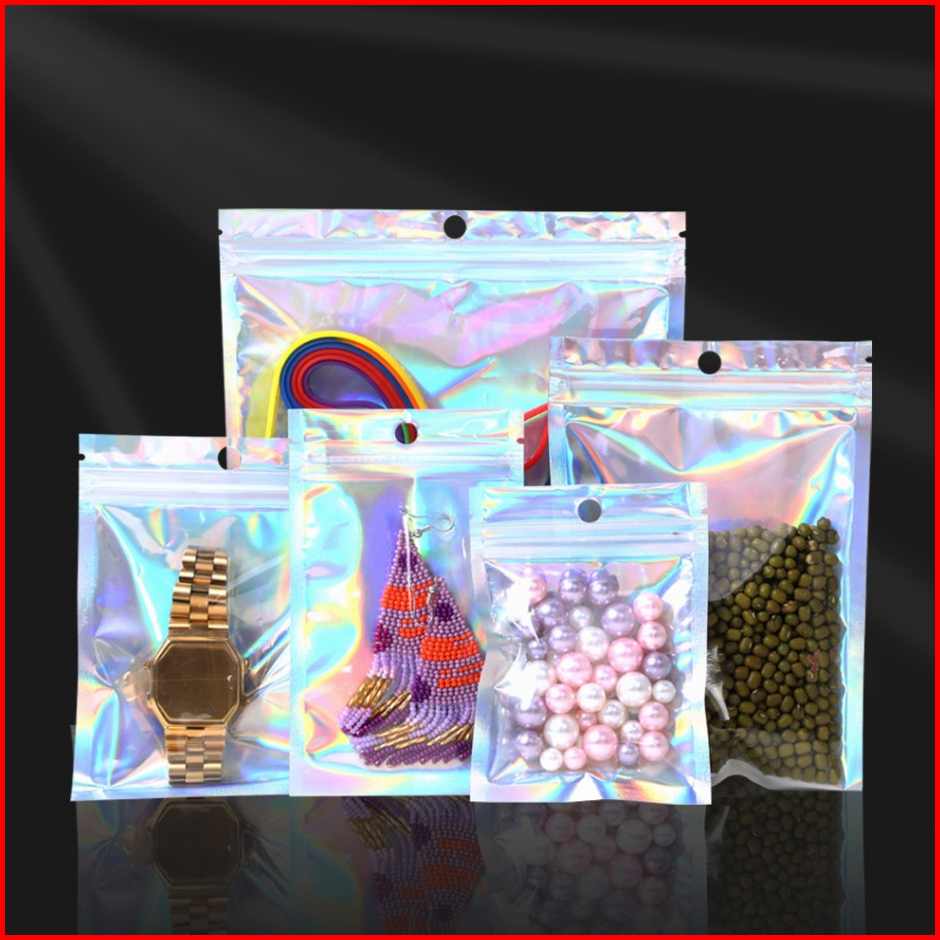100pcs Plastik Klip Ziplock Hologram Zipper Bag Souvenir Accessories Plastik Klip Aksesoris Flat Plastik Souvenir