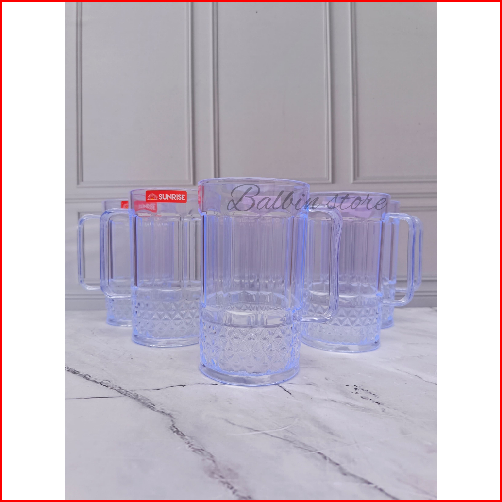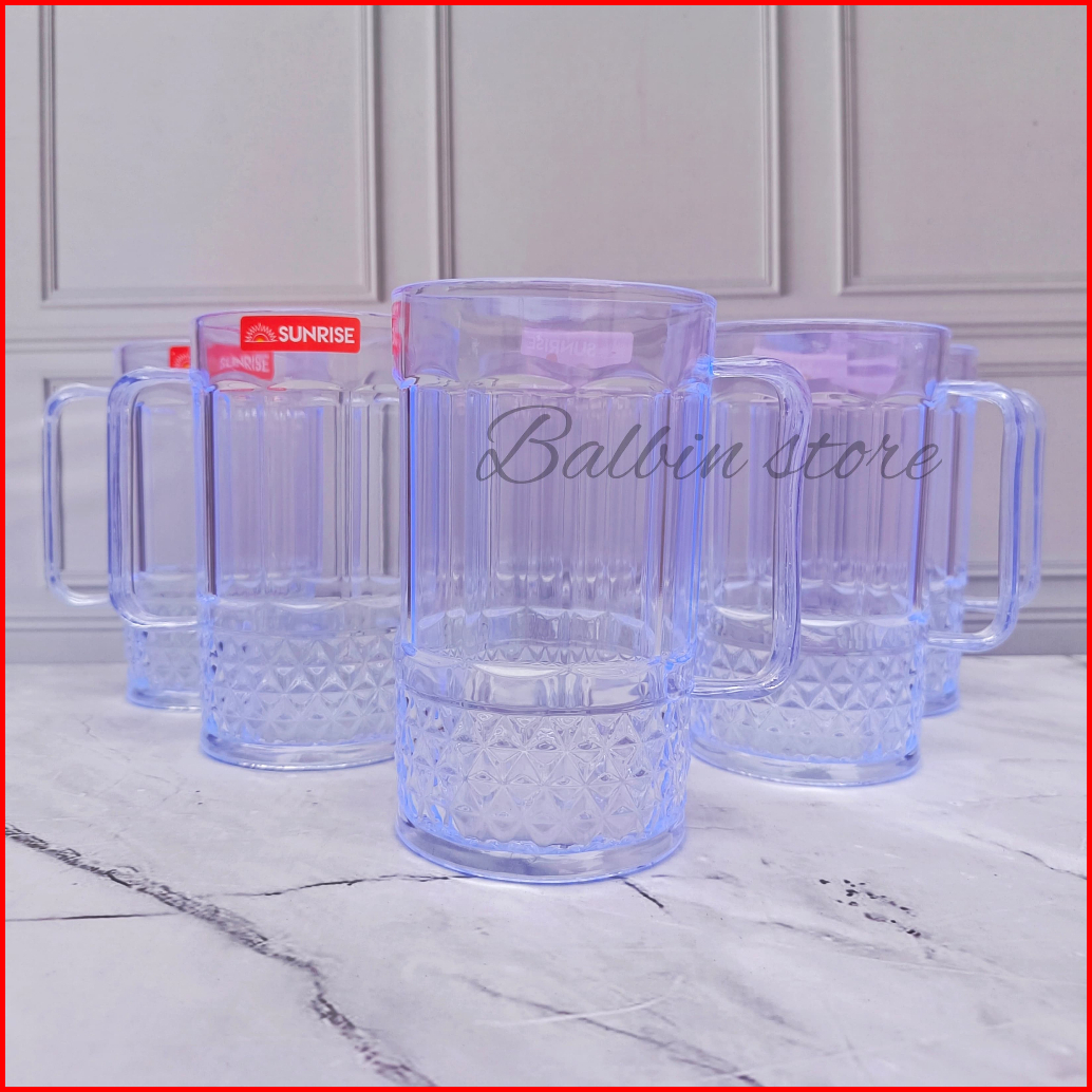 12 Pcs Gelas Gagang Jumbo 500 Ml Bahan Mika Plastik Tebal Tahan Panas Gelas Esteh Gelas Es Kelapa