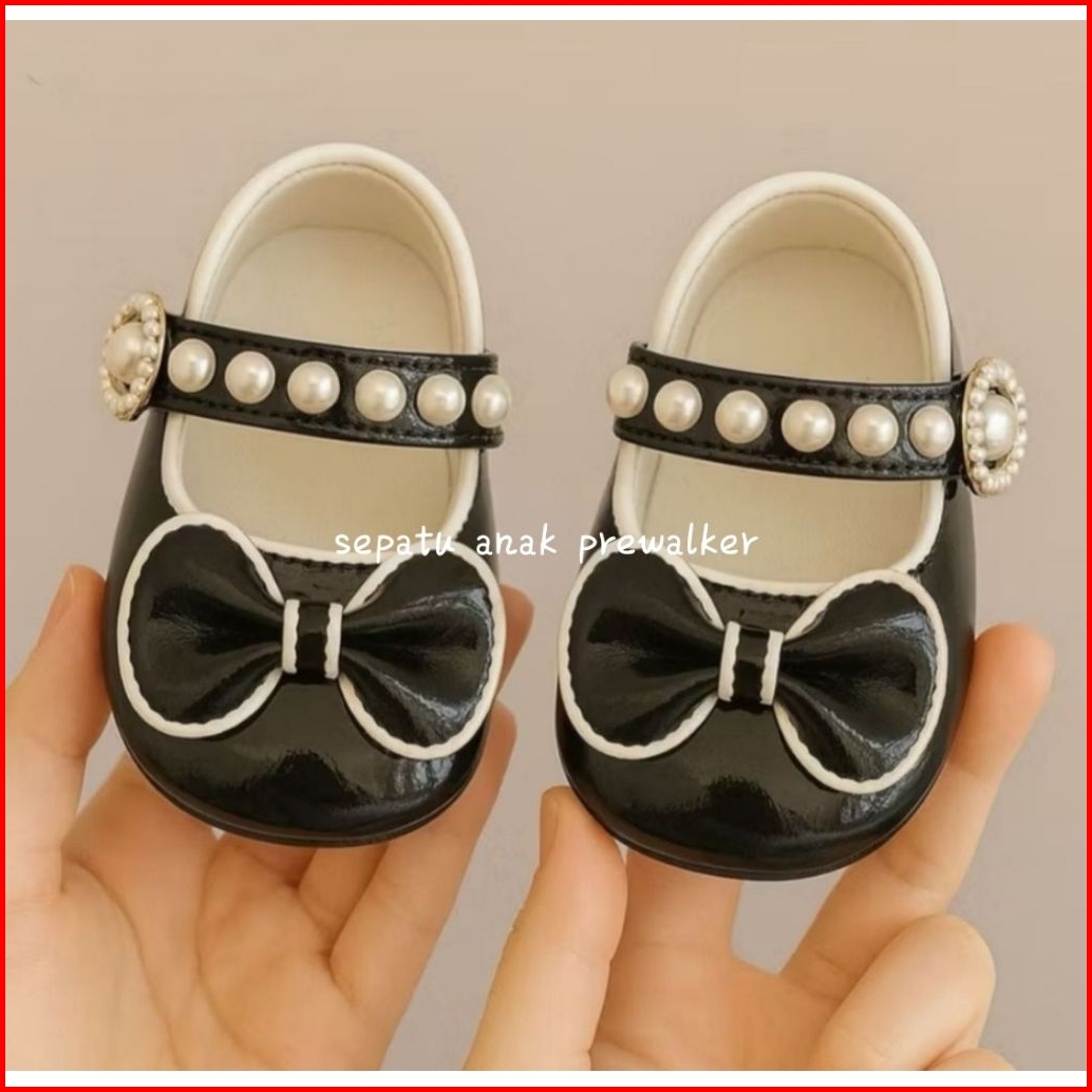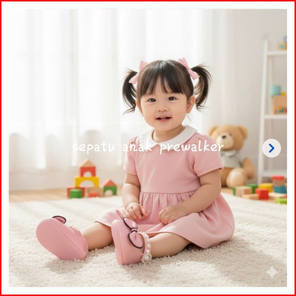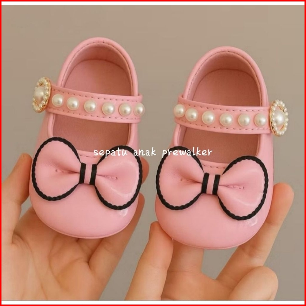 Sepatu Anak Flat Shoes Usia 1-12bulan Baby Shoes Prewalker Model Pita Mutiara
