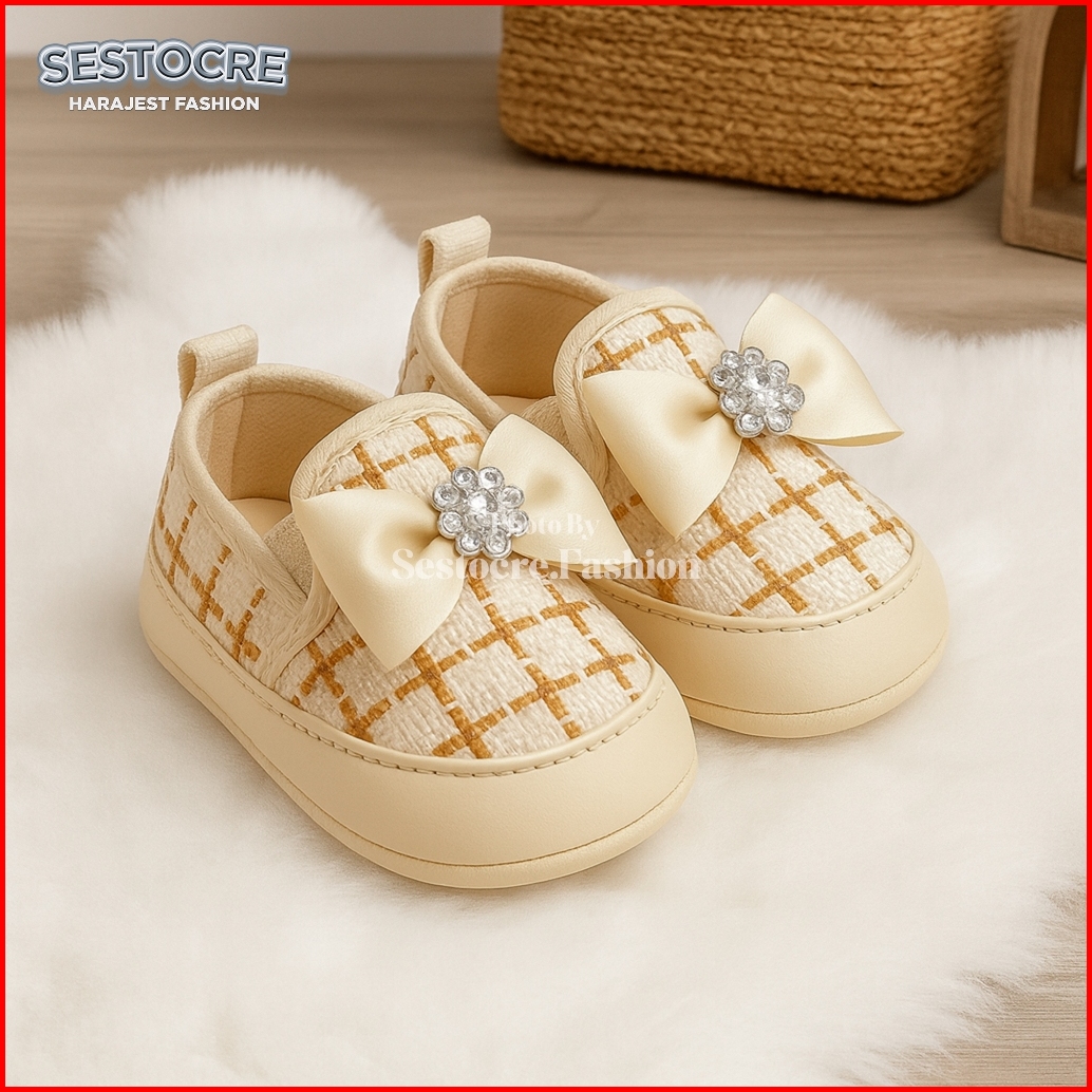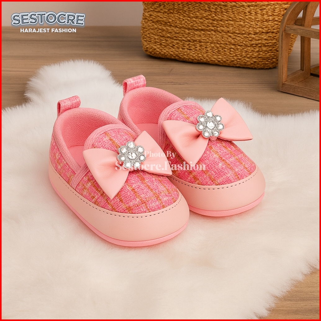 Sepatu Anak Bayi Perempuan Prewalker Rajut Pita Lucu Kekinian Usia 0 - 12 Bulan Terbaru - Baby Shoes Prewalker - Sepatu