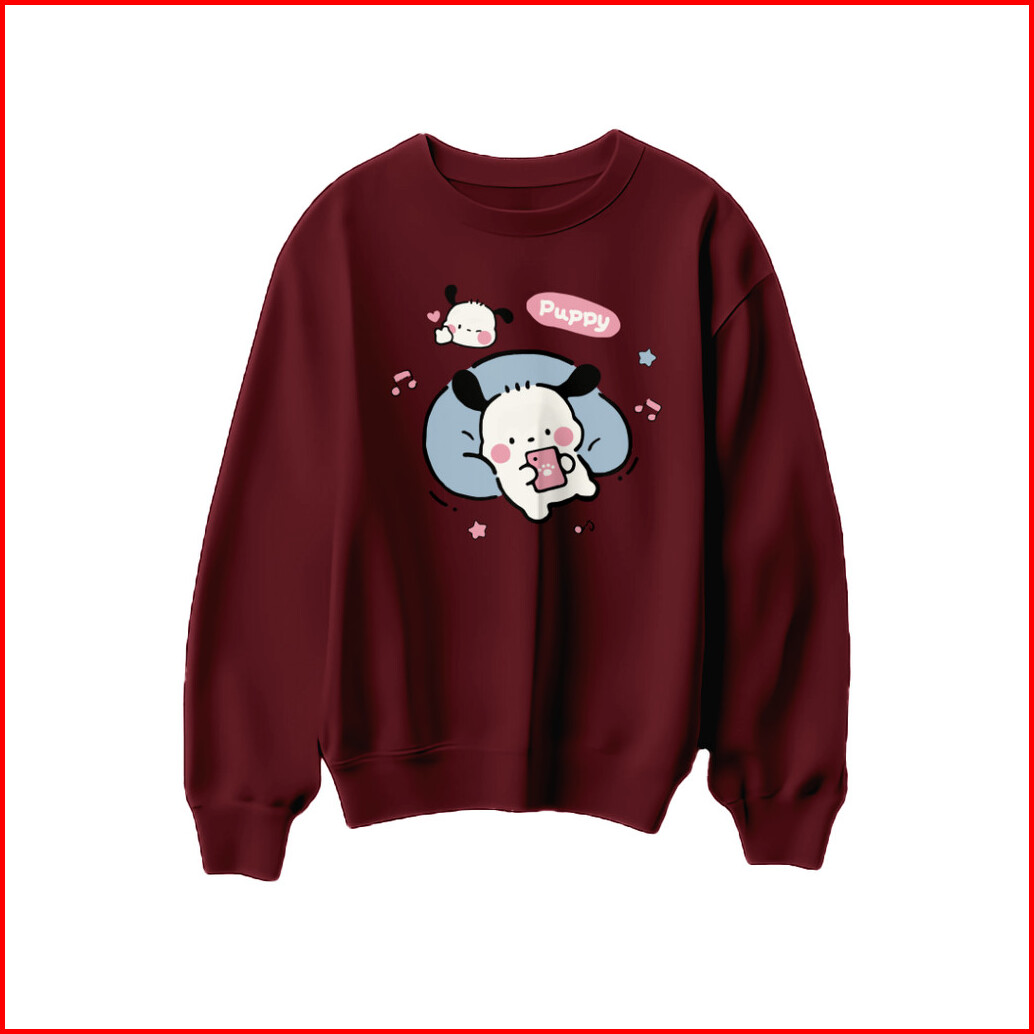 Korean Premium - Sweater Oversize Motif Puppy Cute Sweater Wanita Bahan Cotton