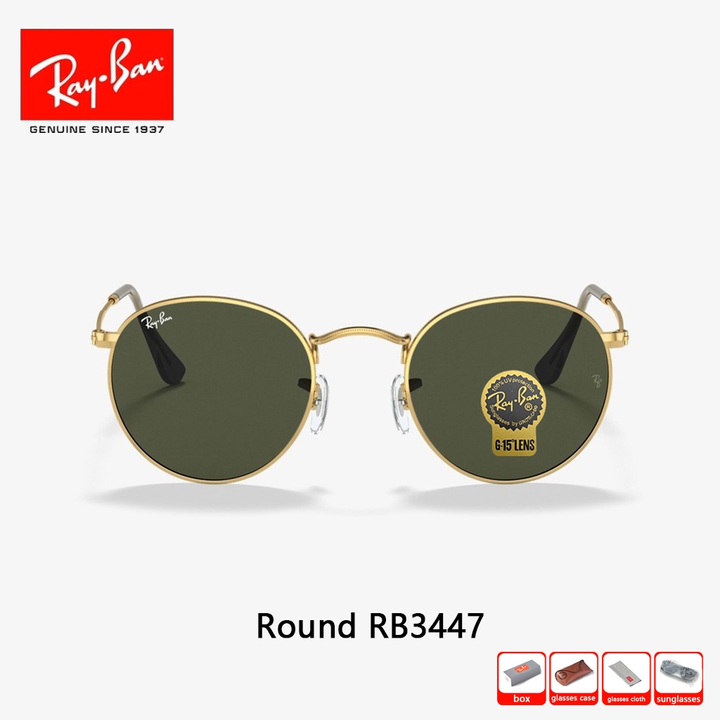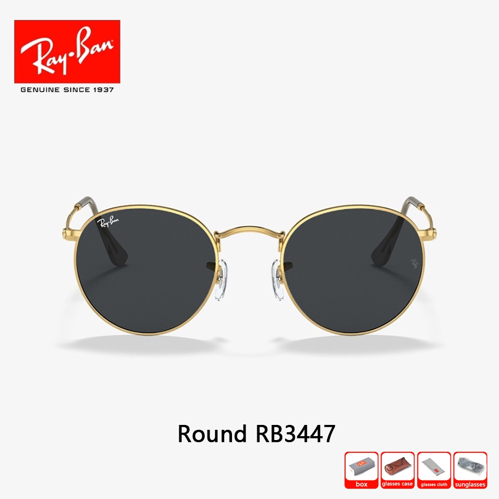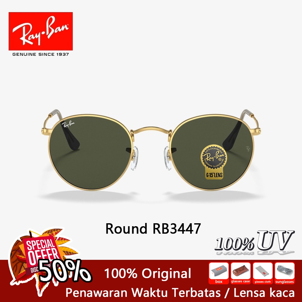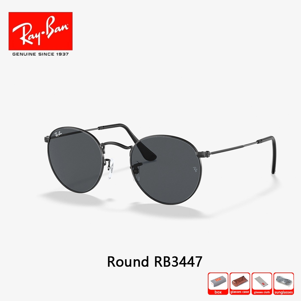Asli kacamata hitam RAY-BAN Round Metal RB3447 Global Fitting Sunglasses 51mm Pria Wanita Original 100 PERSEN black
