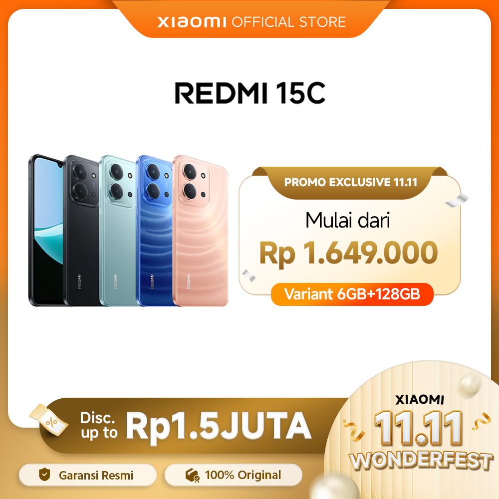 Xiaomi Redmi 15C 6GB/128GB 8GB/256GB Baterai besar 6000mAh dengan pengisian daya 33W Desain ramping dan elegan Layar Imersif 6.9" 120Hz 50 MP kamera ganda AI Offical Store
