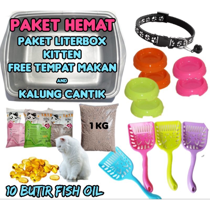 PAKET BAK PASIR + Sekop +1KG Pasir Gumpal Wangi BENTONITE TIMO,TOFU(500GR), GRATIS TEMPAT MAKAN KUCI
