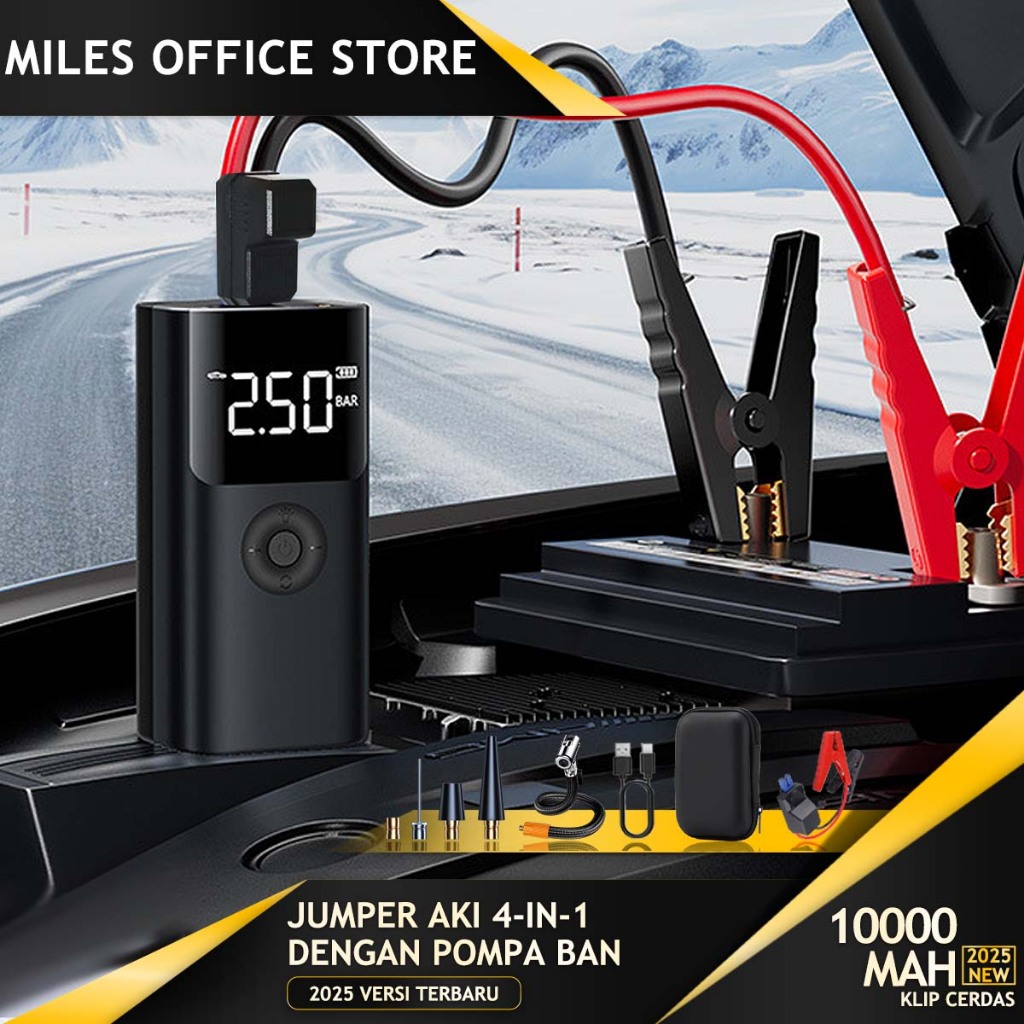 Jumper Aki Mobil Portable 10000mAh Jumper Aki Dan Pompa Ban Dilengkapi Power Bank Dan Lampu LED 12V