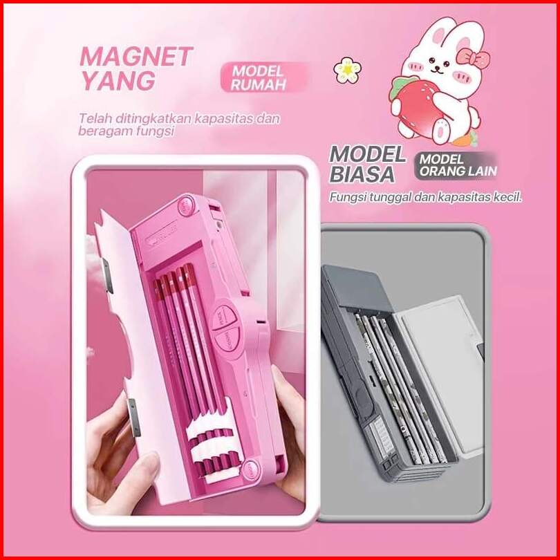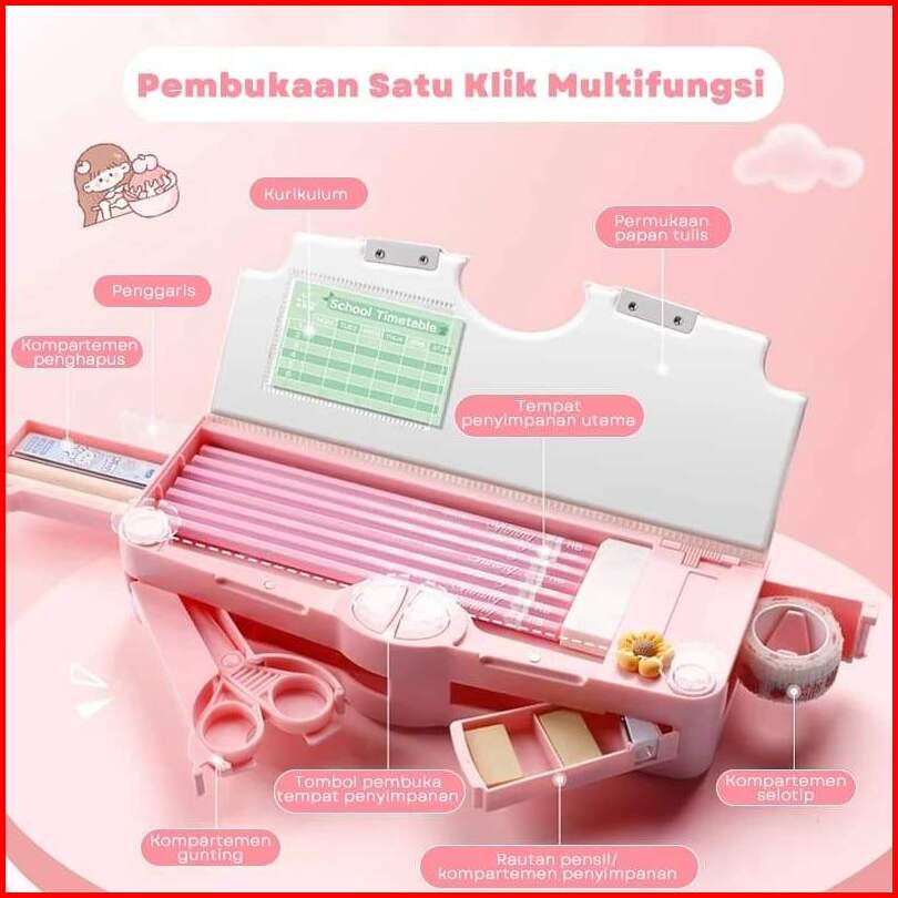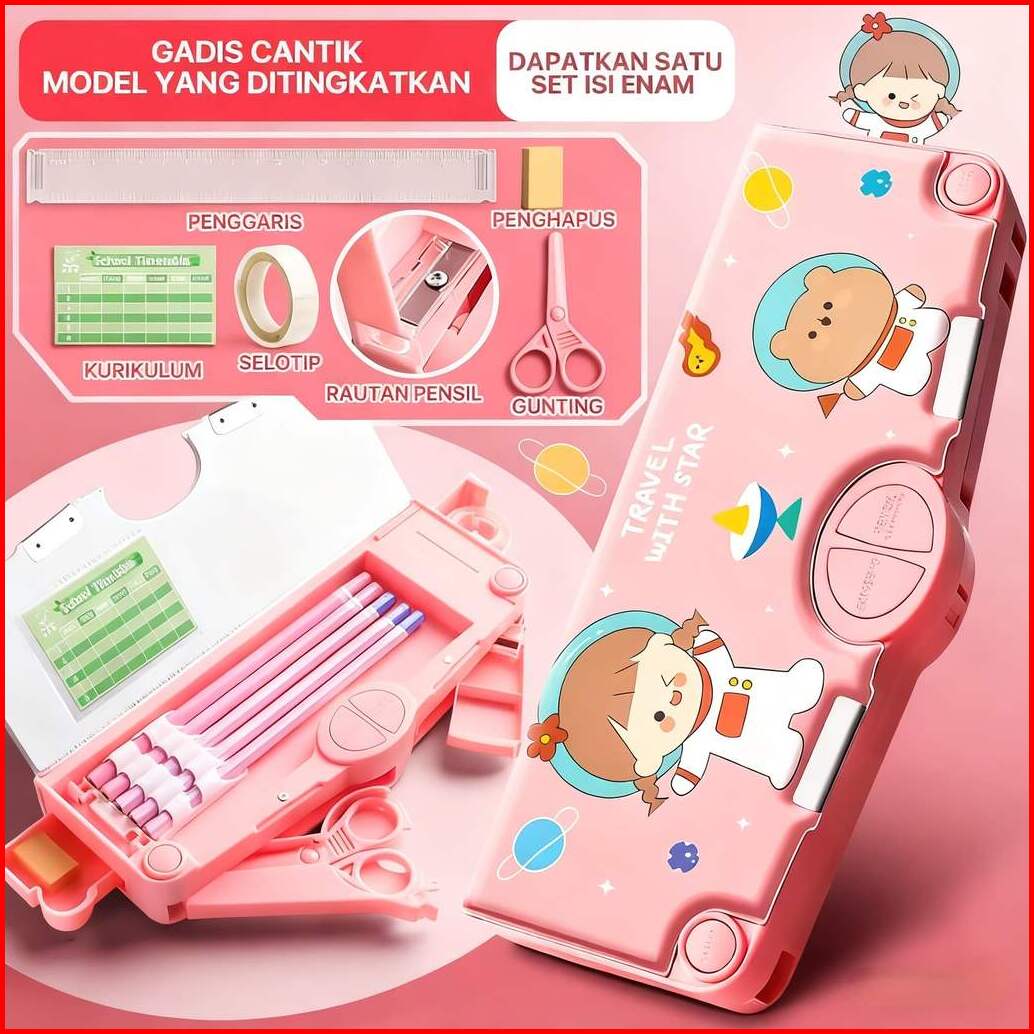 Kotak Pensil 2 Sisi Kapasitas Besar Dengan Rautan Gunting Dan Penggaris Bawaan