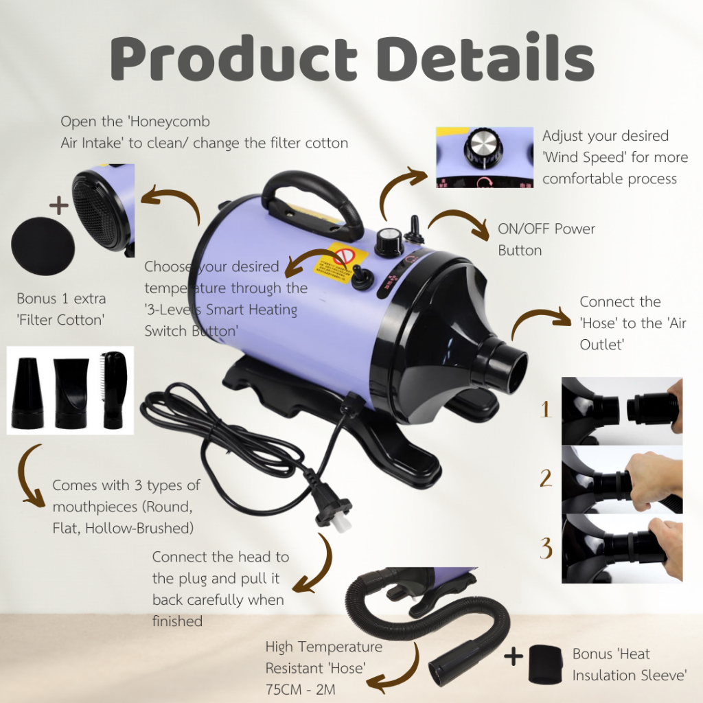 Pet Dryer JC-2600W/ Pet Blower Anjing Kucing Anabul/ Pengering Bulu Anjing Kucing Anabul/ Pet Grooming Fur Dryer With Heater/ Blower Anjing/ Pengering Anjing/ Pengering Kucing/ Pengering Turbo