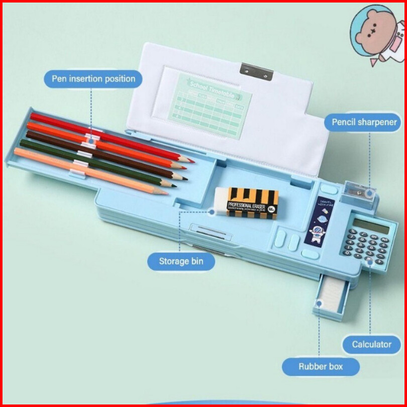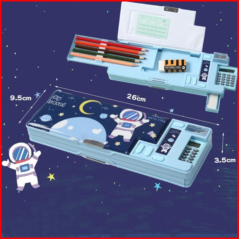 Kotak Pensil Pop Out Kalkulator Pencil Case Tempat Pensil Unicorn Astronot Kotak Penyimpanan Alat Tulis Multifungsi Meka