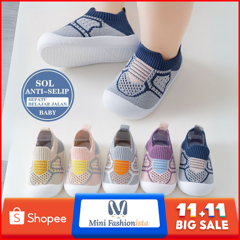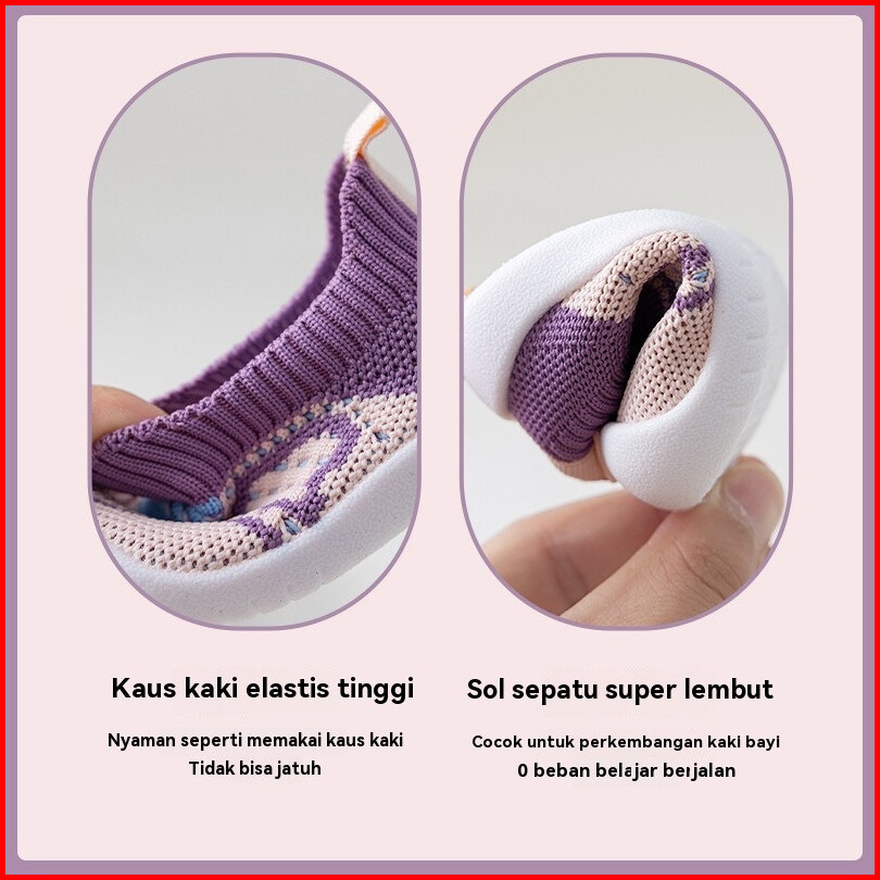 Sepatu Bayi Anak Perempuan Sepatu Bayi Ringan Full Karet Sepatu Anak Slipon Rajut 9 - 24 Bulan