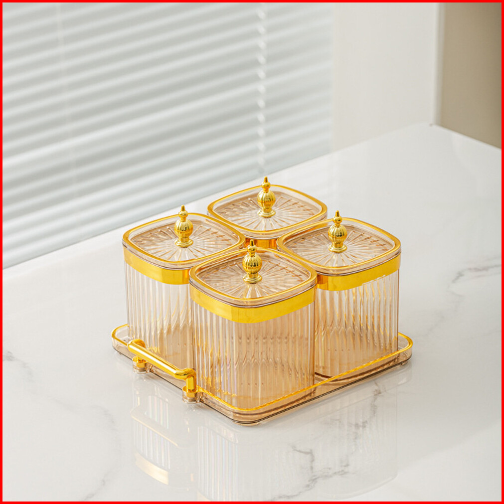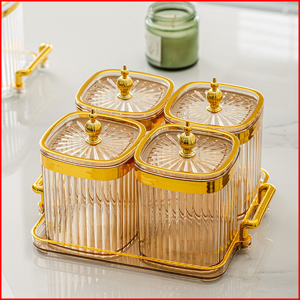 Toples Akrilik Untuk Cemilan Set Dengan Nampan Desain Elegan Dan Kedap Udara