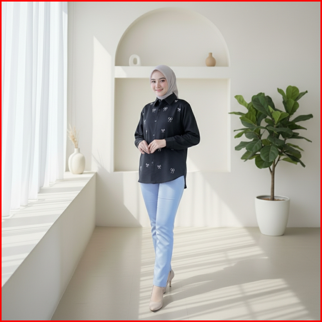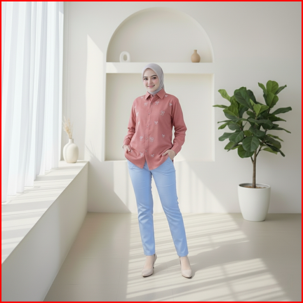 Kemeja Bordil Pita Kekinian Polimicro Pita Kemeja Wanita Casual