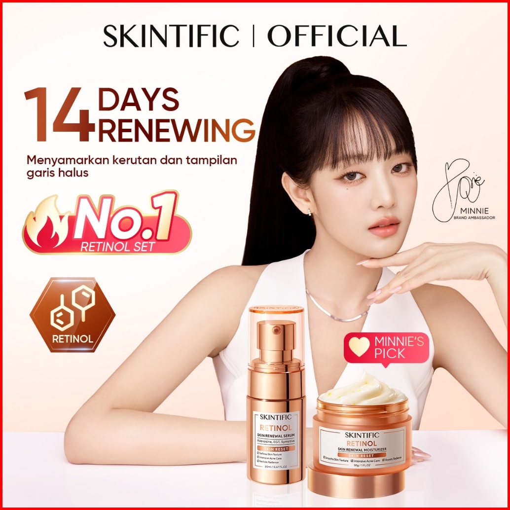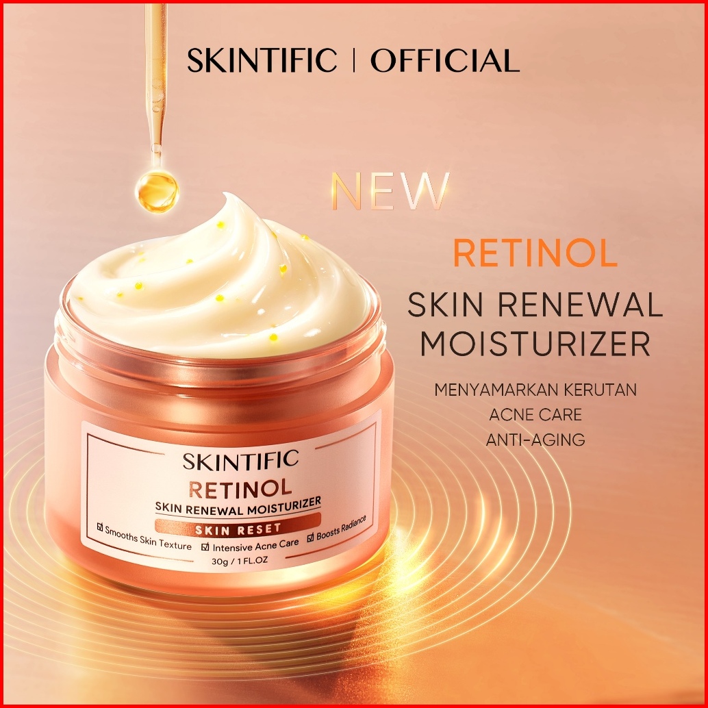 Skintific - 2pcs Paket Set Retinol Skin Renewal Anti-aging Serum Moisturizer Acne Care Memudarkan Garis Halus Memudarkan