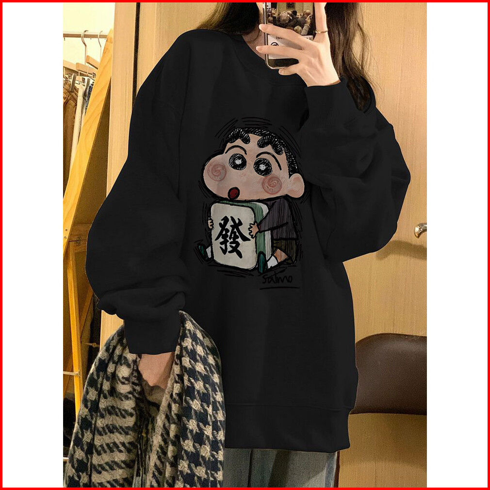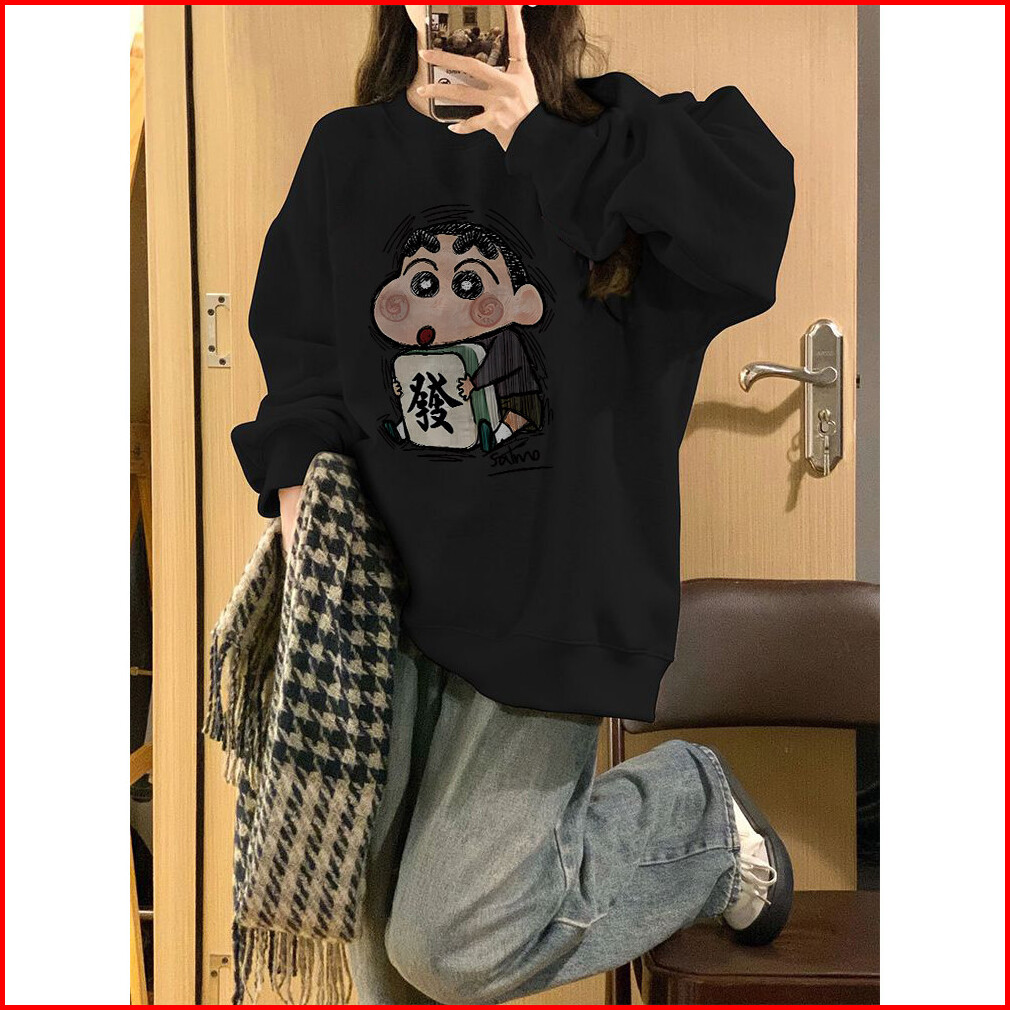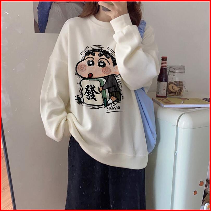 Po Floret Sweatshirt Wanita Korean Style Aesthetic Oversize Sweater Crayon Shin-chan Print Baju Lengan Panjang Wanita Ke