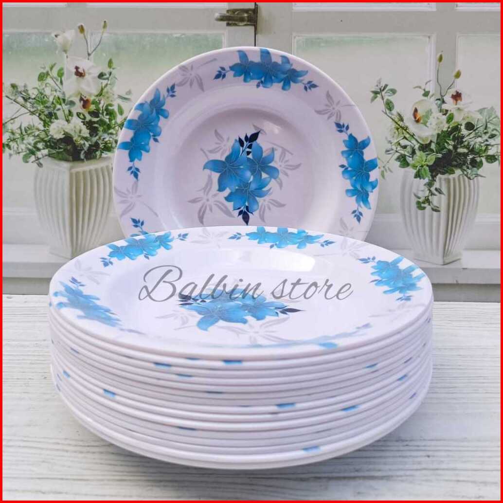 Promo 12 Pcs Piring Melamin Lebar 23 Cm - Piring 9inch - Piring Makan - Piring Melamine - Piring