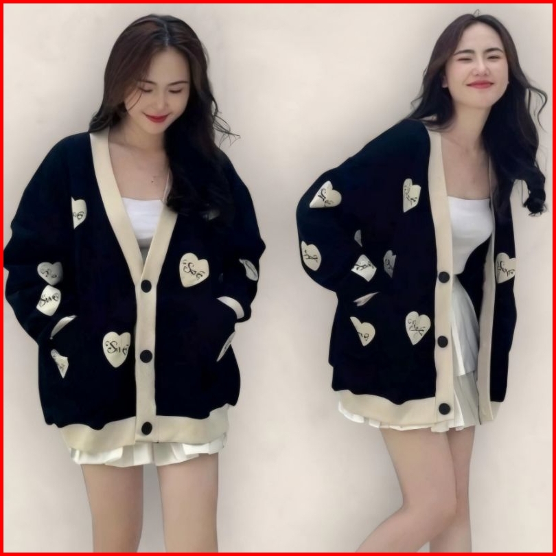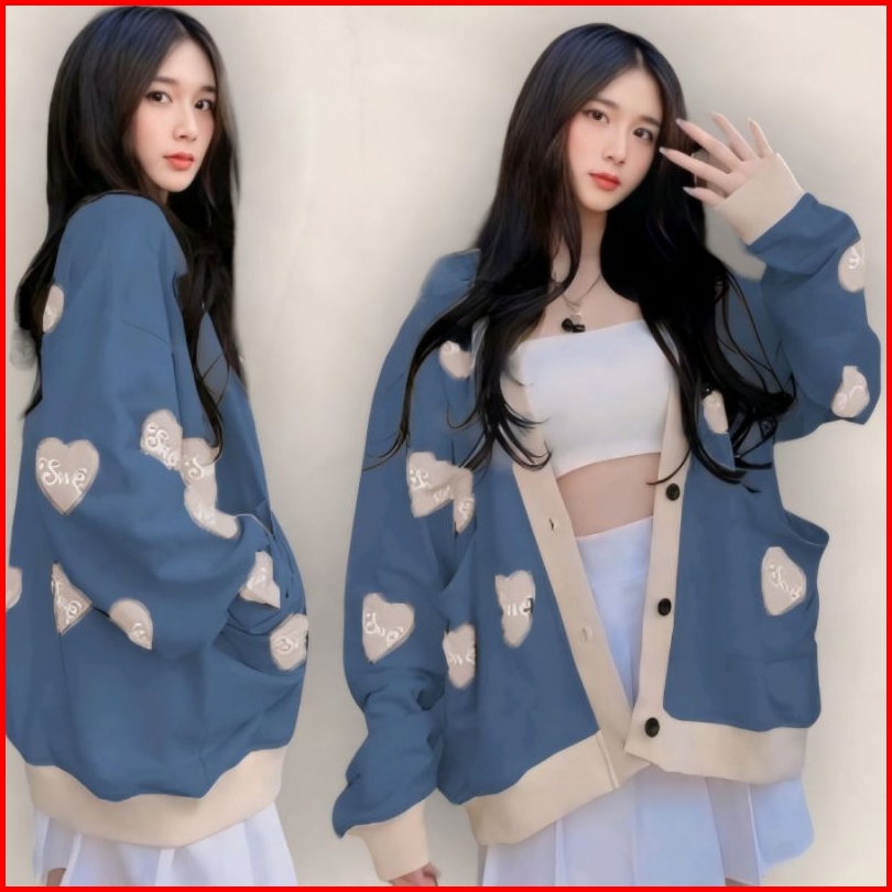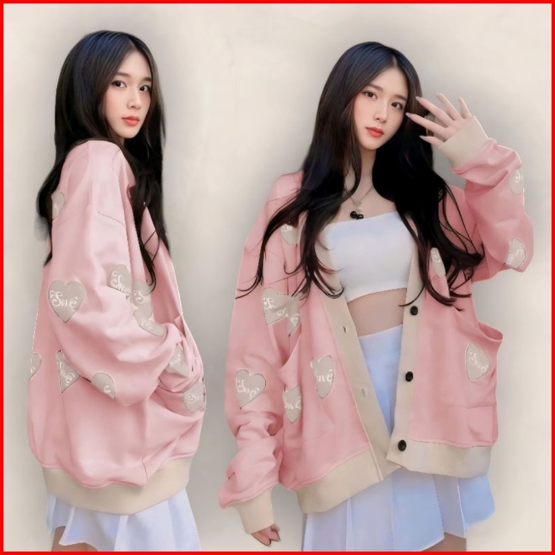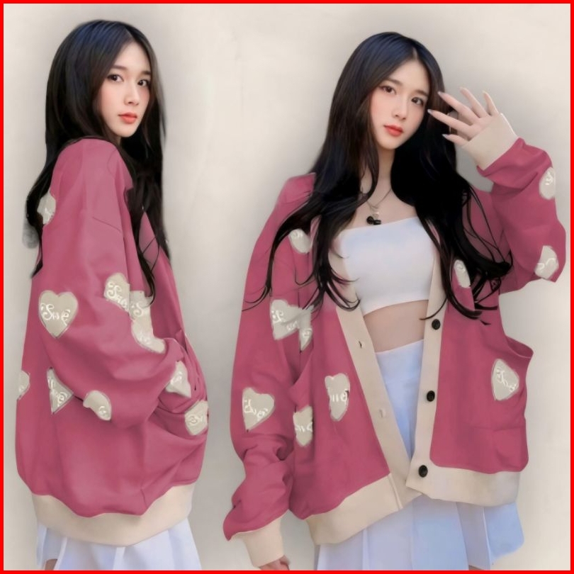 Sweater Sewe-love Wanita Oversize Sweater Cardigan Basic Casual Korean Baju Atasan Wanita Kancing Depan Bersaku Terlaris