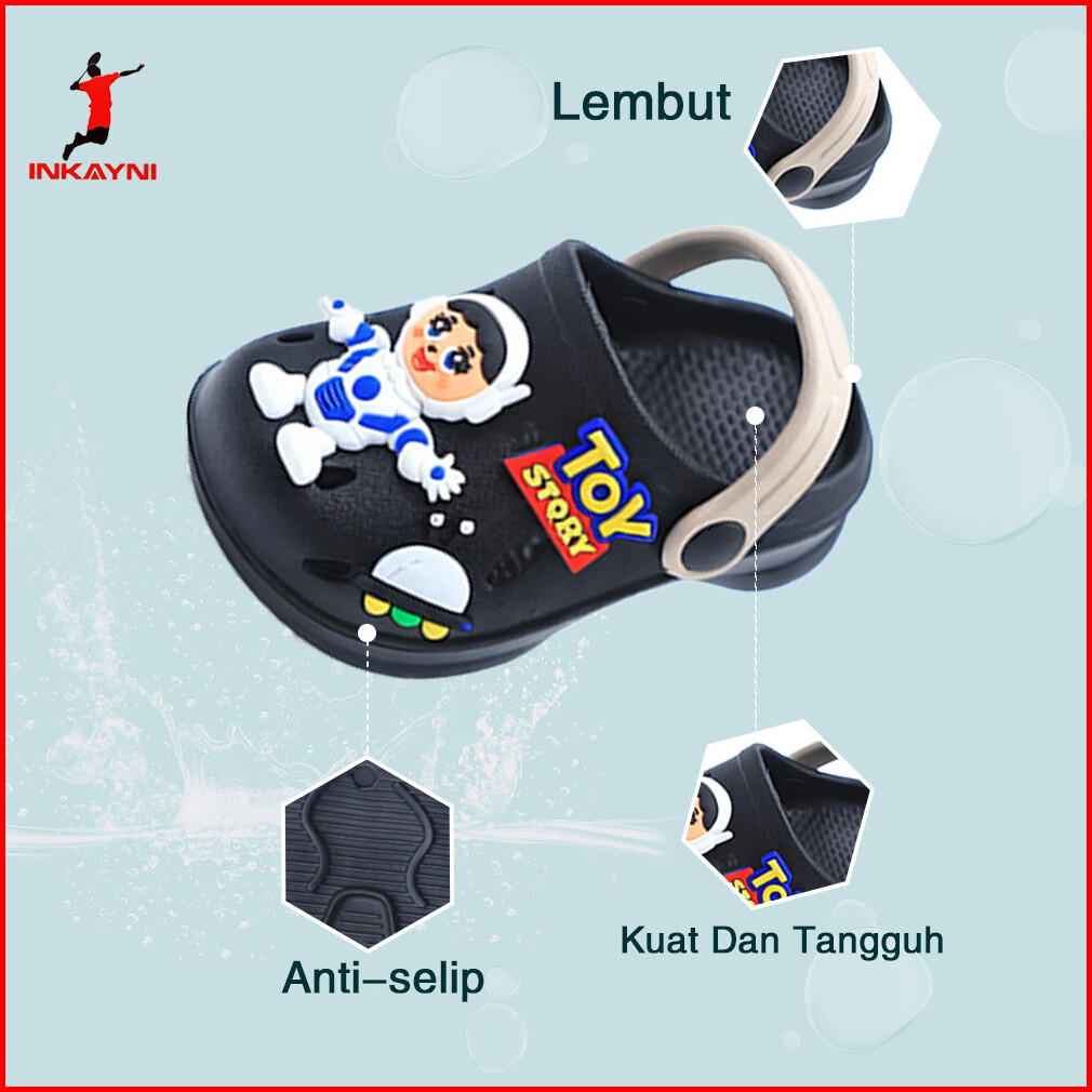 Inkayni Sandal Anak Laki-laki Sandal Slip-on Anak Laki-laki Ukuran 18-29 Bahan Karet Anti-selip Motif Buzz Lightyear Dar