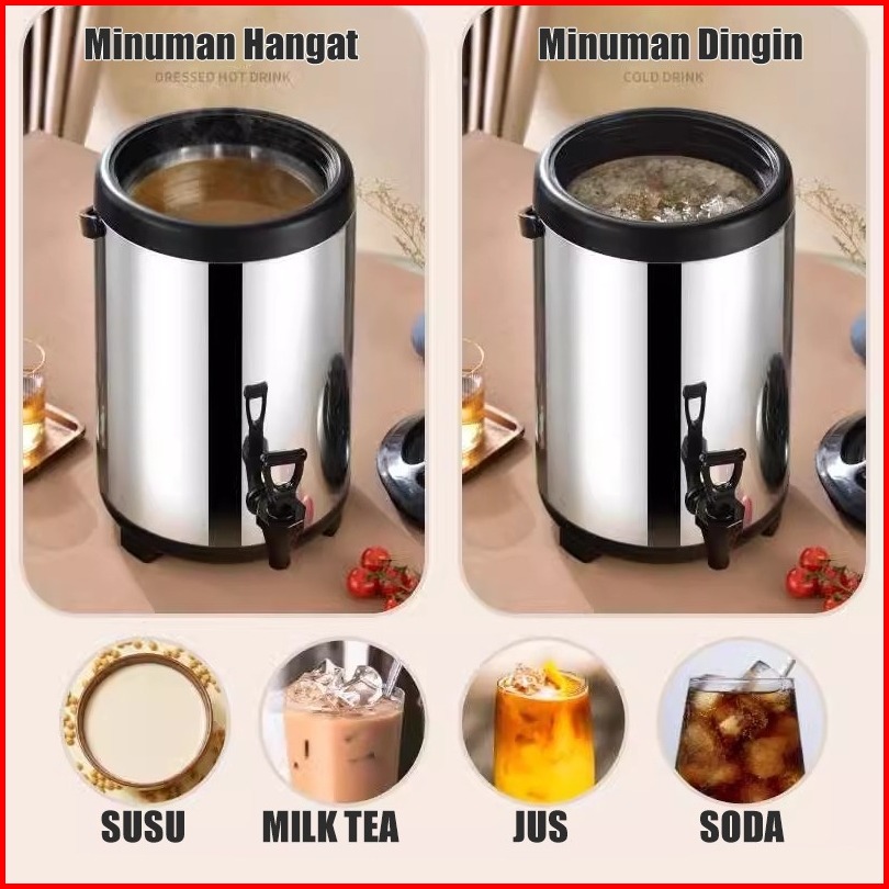 Lenodi Steel Sus304 8l 10l 12l Termos Milk Tea Bucket Jumbo Termos Air Milk Tea 8 10 12 Liter Serbaguna Termos Tahan Lam