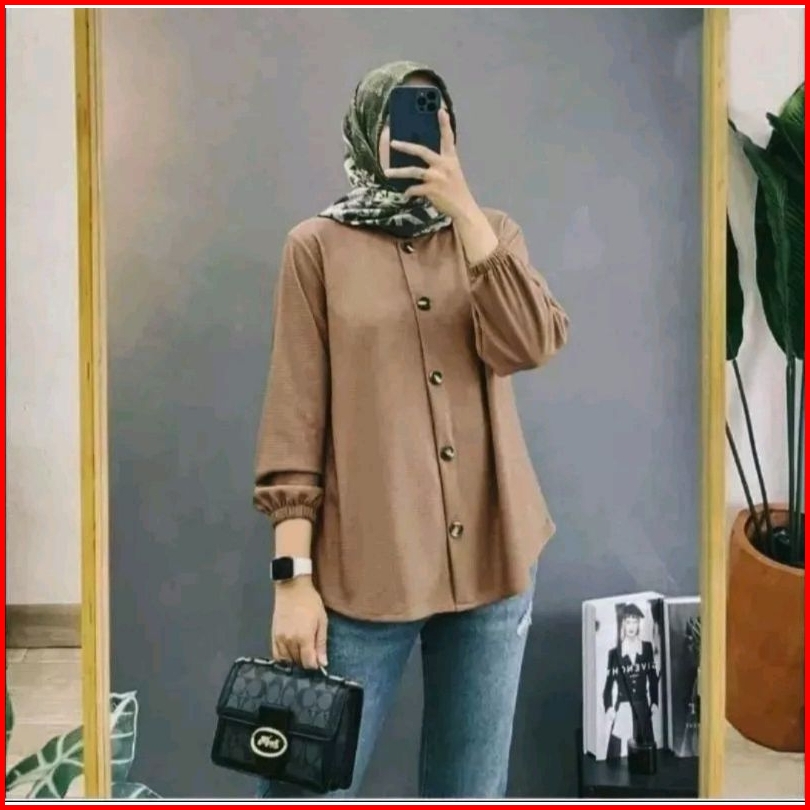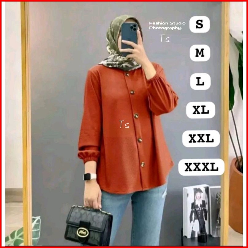 Kemeja Crinkle Airflow-atasan Wanita Jumbo