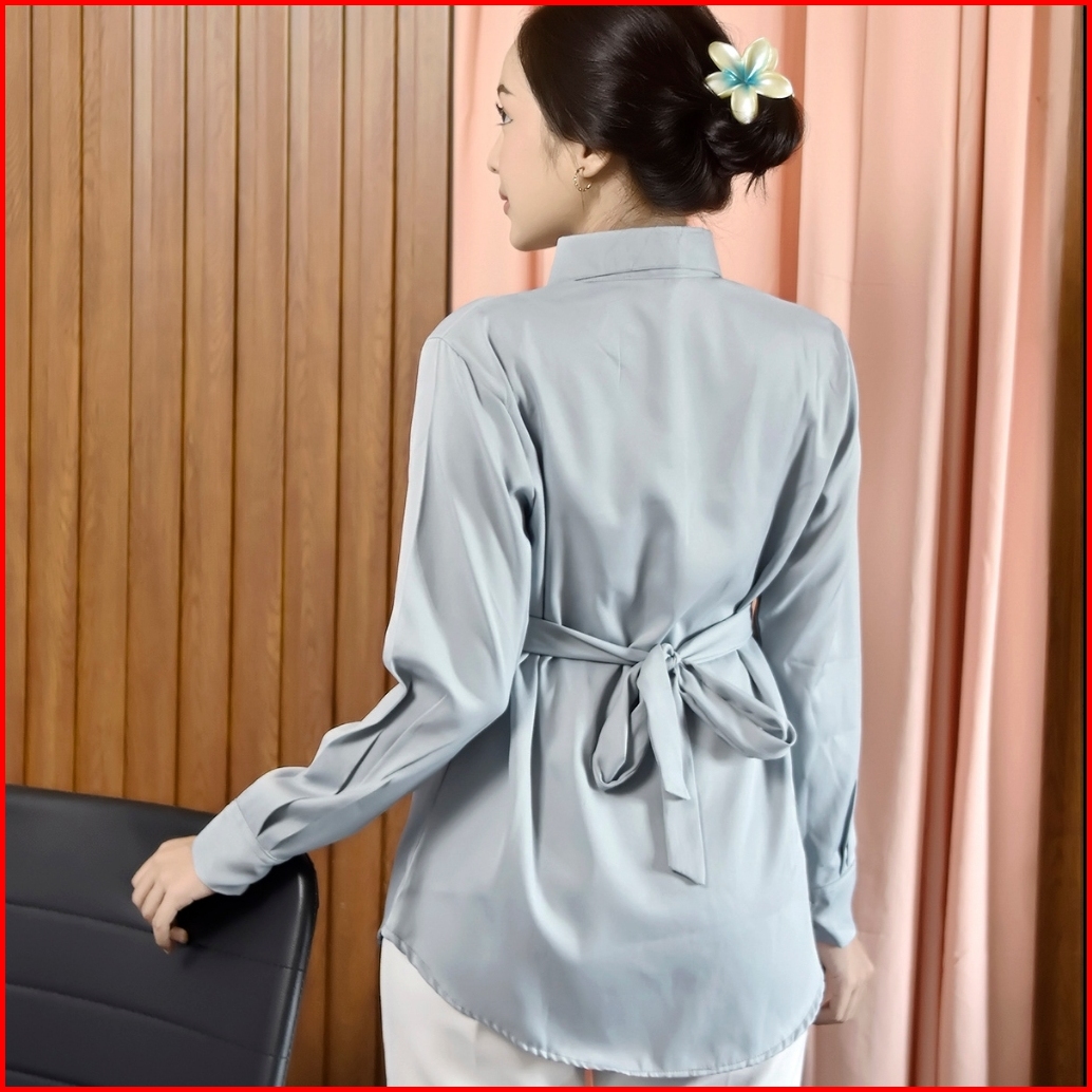 Kemeja Polos Slim Fit Wanita Kerja Kantoran Cewek Kuliah Kekinian Elsira Blouse Lengan Panjang