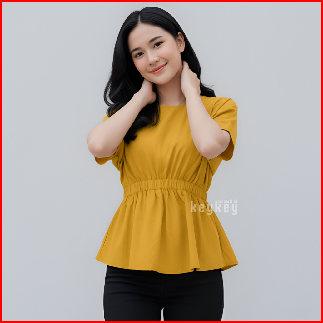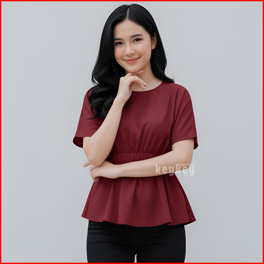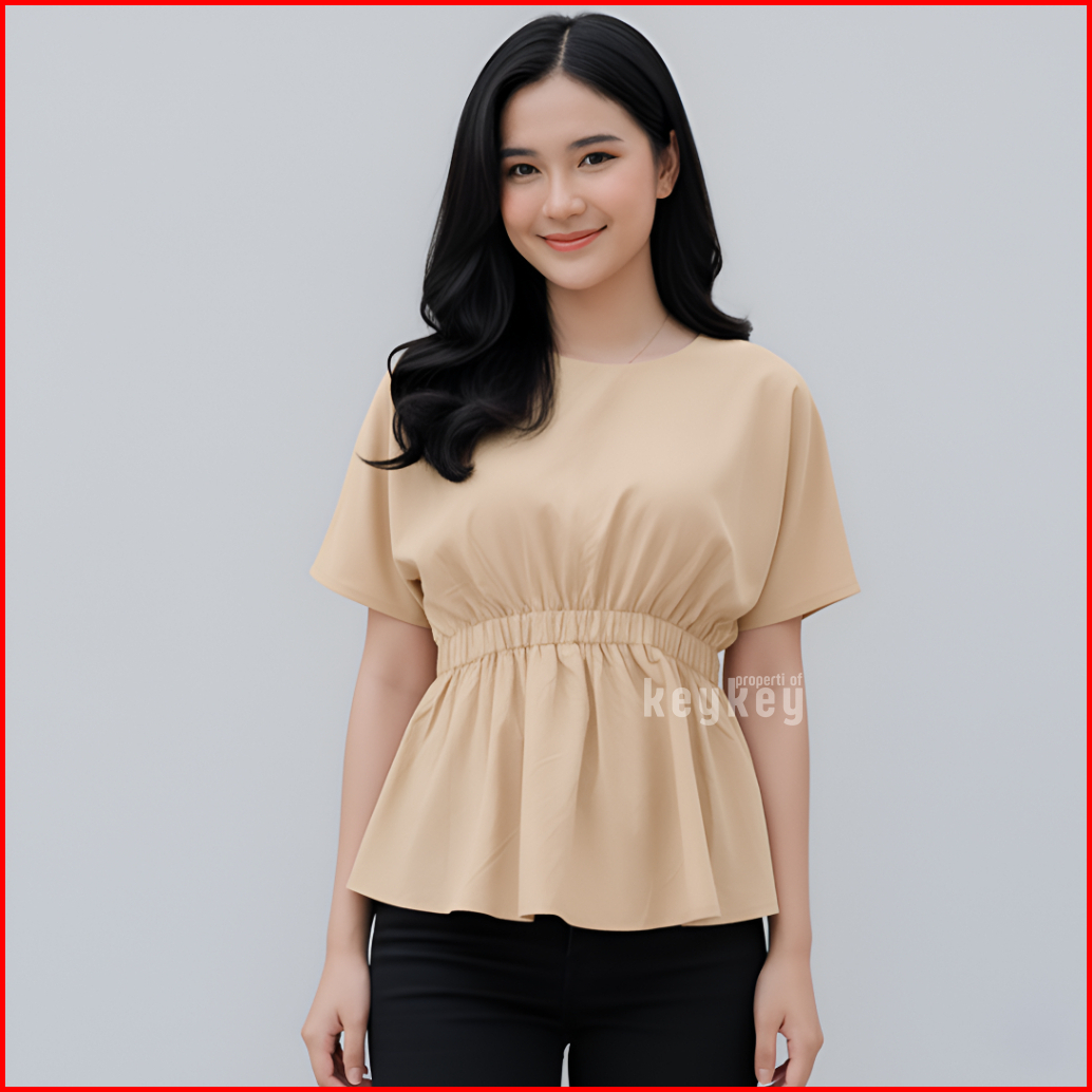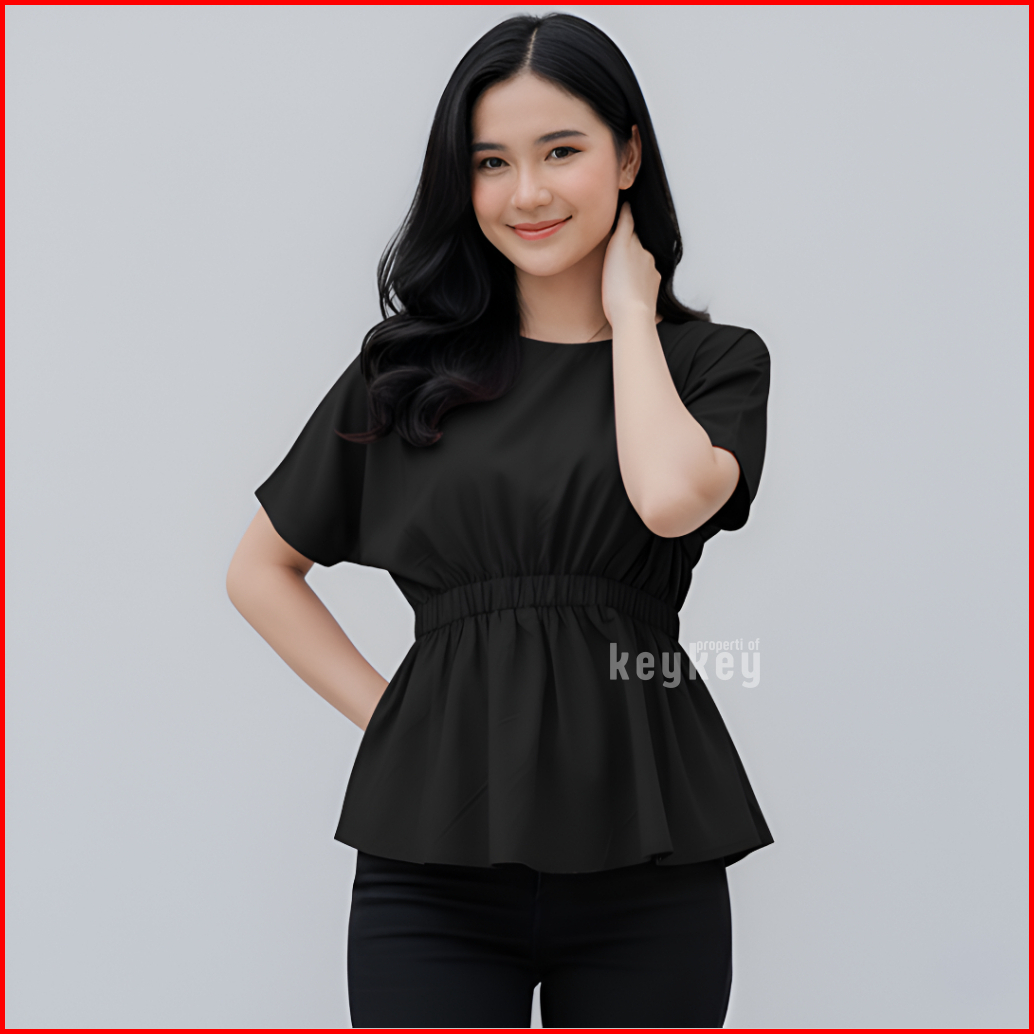 Key - 0648 Sheeva Top Size Xl Atasan Wanita Blouse Simple Pinggang Karet Moscrepe Halus