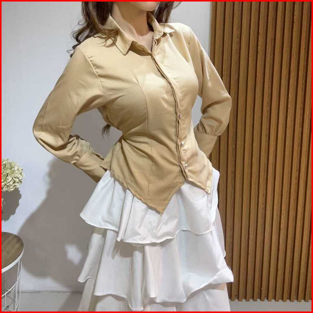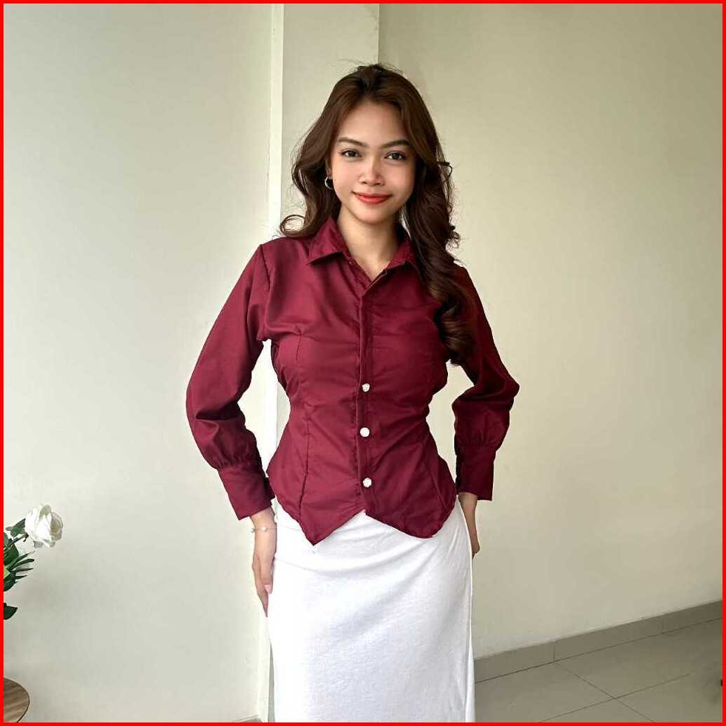 Shanju Blouse Tali Belakang Atasan Shirt Kemeja Kancing Kantor Mifta Blouse