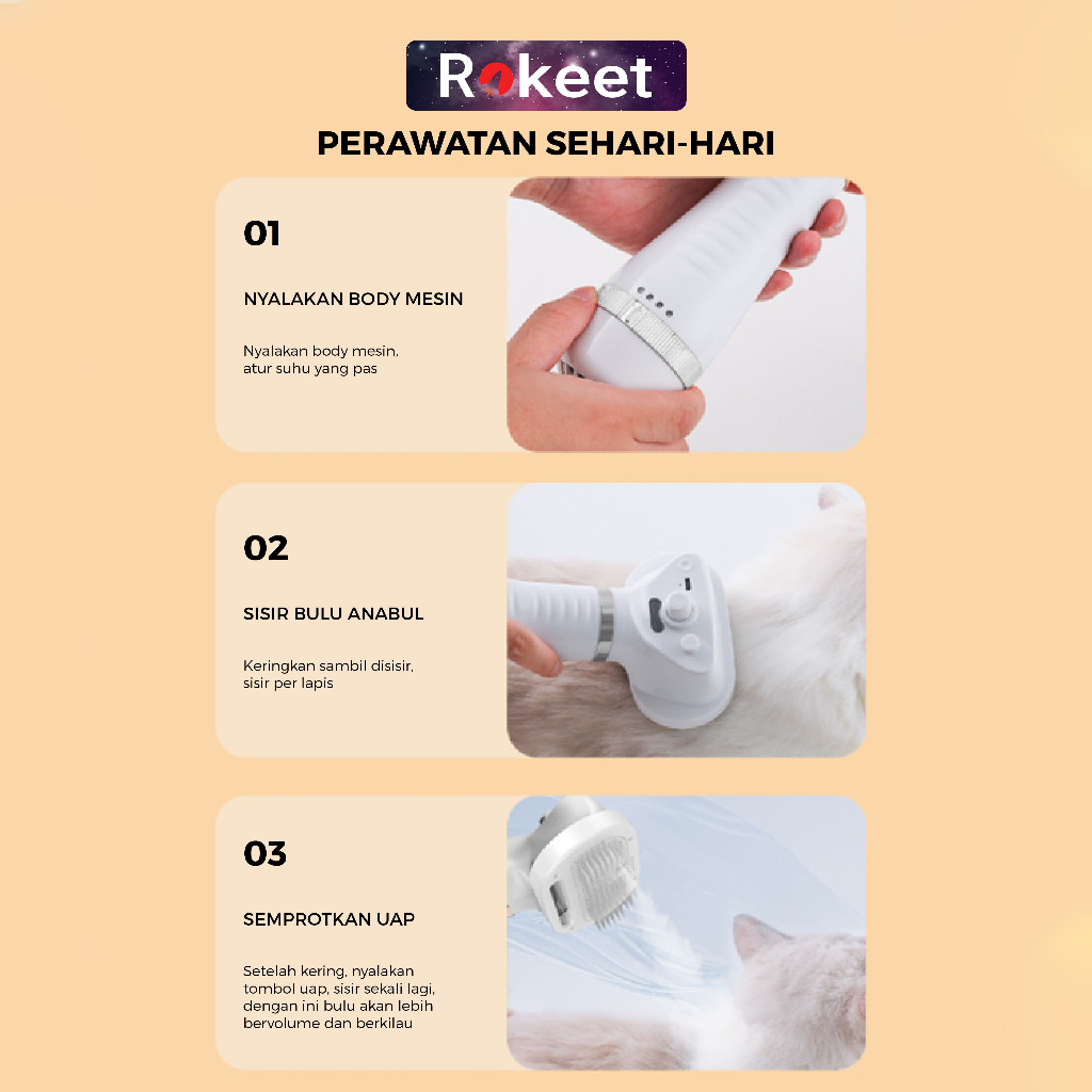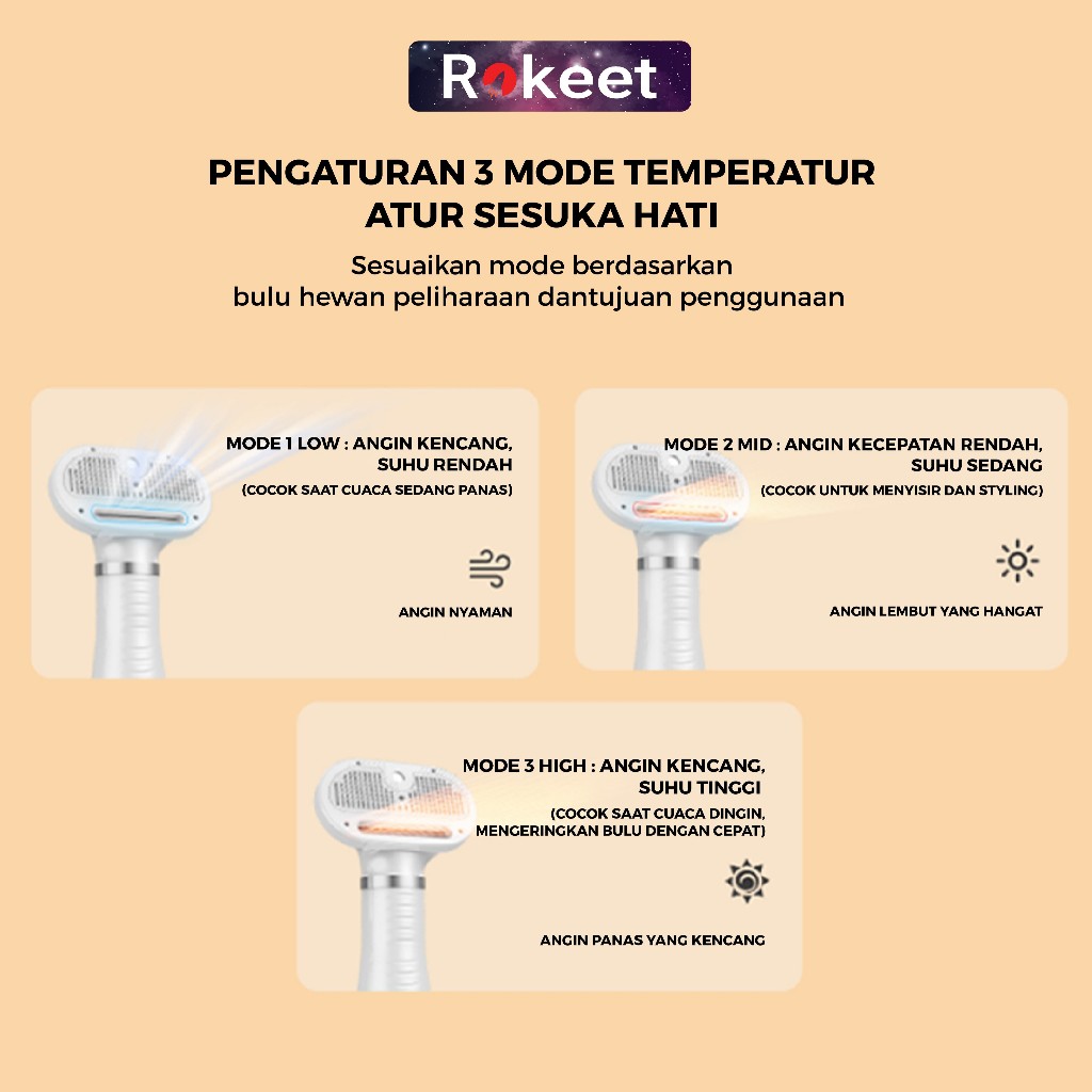 Rokeet Sisir Pengering Bulu Peliharaan Kucing Anjing 2 In 1 Pet Grooming Hair Drayer Blower & Comb Portable